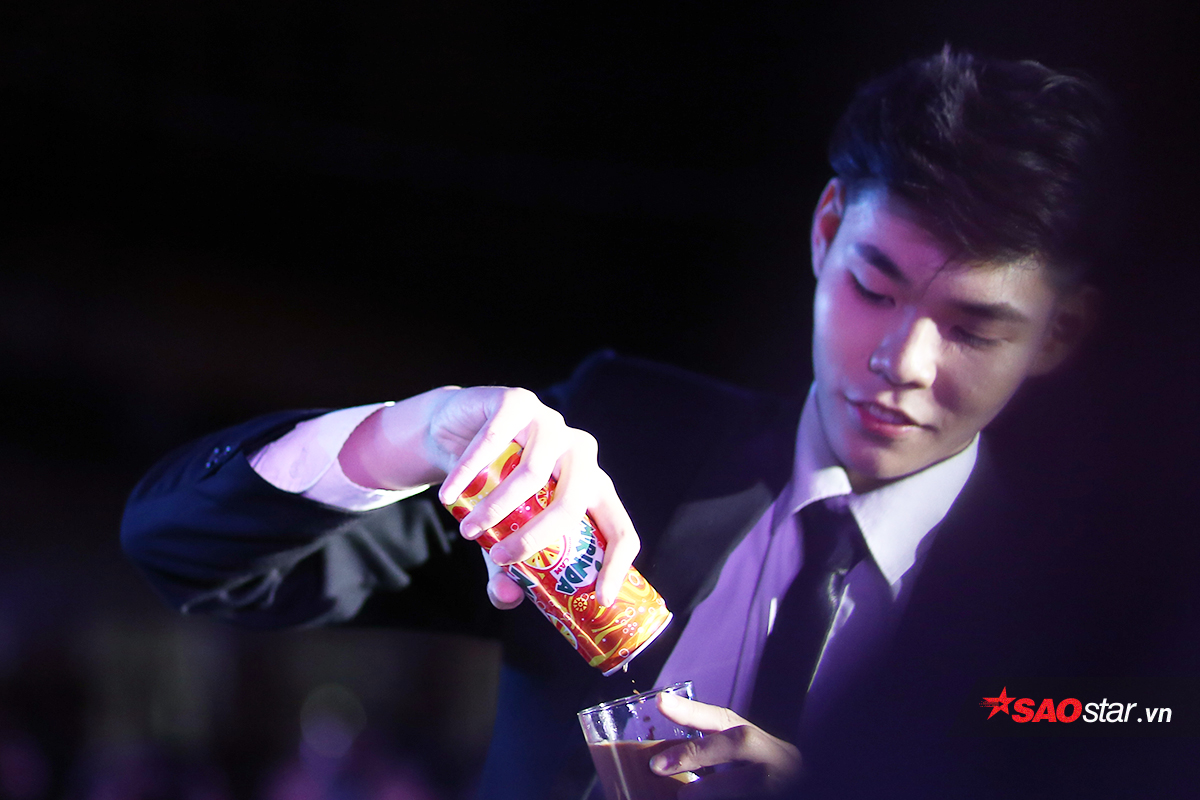 Cuộc thi cũng ghi nhận những màn trình diễn tài năng hết sức thú vị. Trong ảnh là Nguyễn Lê Minh Dũng trổ tài ảo thuật: biến nước ngọt đóng lon thành cà phê sữa
