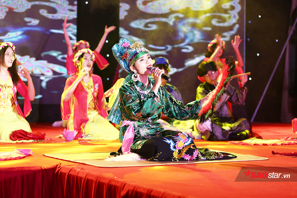 Đương kim quán quân Ngôi sao Việt Đức Nguyễn Trần Phương Thảo tiếp sức cho các đàn em của mình trên hàng ghế khán giả