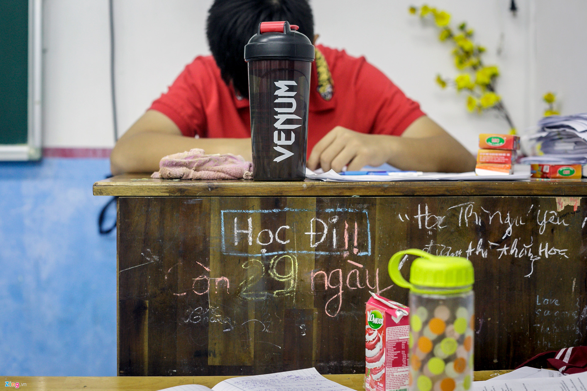 Có em công khai tại lớp ôn luyện những mục tiêu hướng tới, như muốn có chiếc xe máy mà gia đình hứa trao giải khi đỗ đại học. Có em viết hẳn tên trường lên bàn hoặc giấy khen, cũng có bạn trẻ tự động viên mình với dòng chữ “Cố lên”, “Còn 29 ngày nữa”…