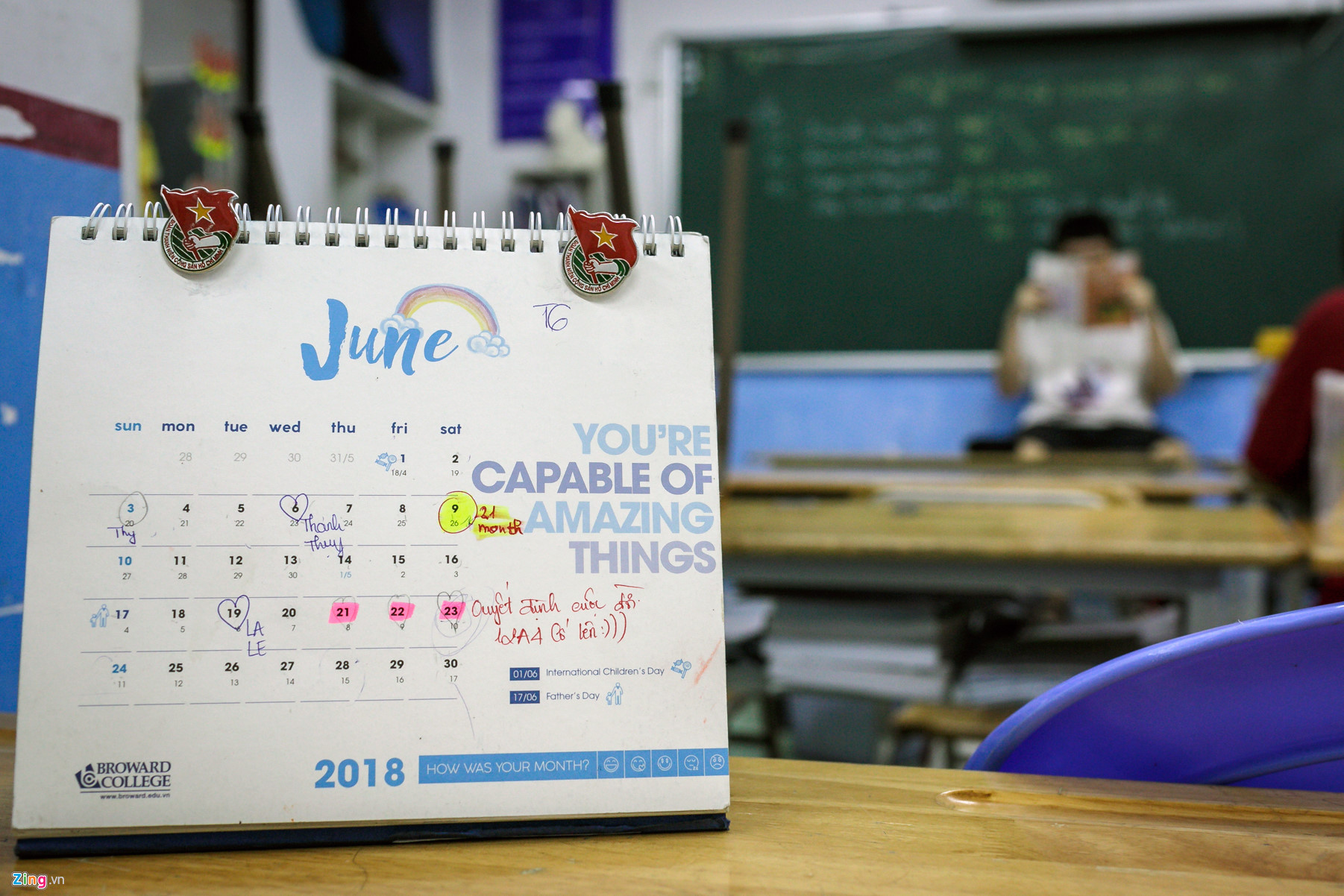 Những câu nói động viên, cổ vũ tinh thần cũng được học sinh dán và ghi lên nhiều vật dụng trong lớp học như những lời nhắc nhở cho sự cố gắng vì một kỳ thi quan trọng.