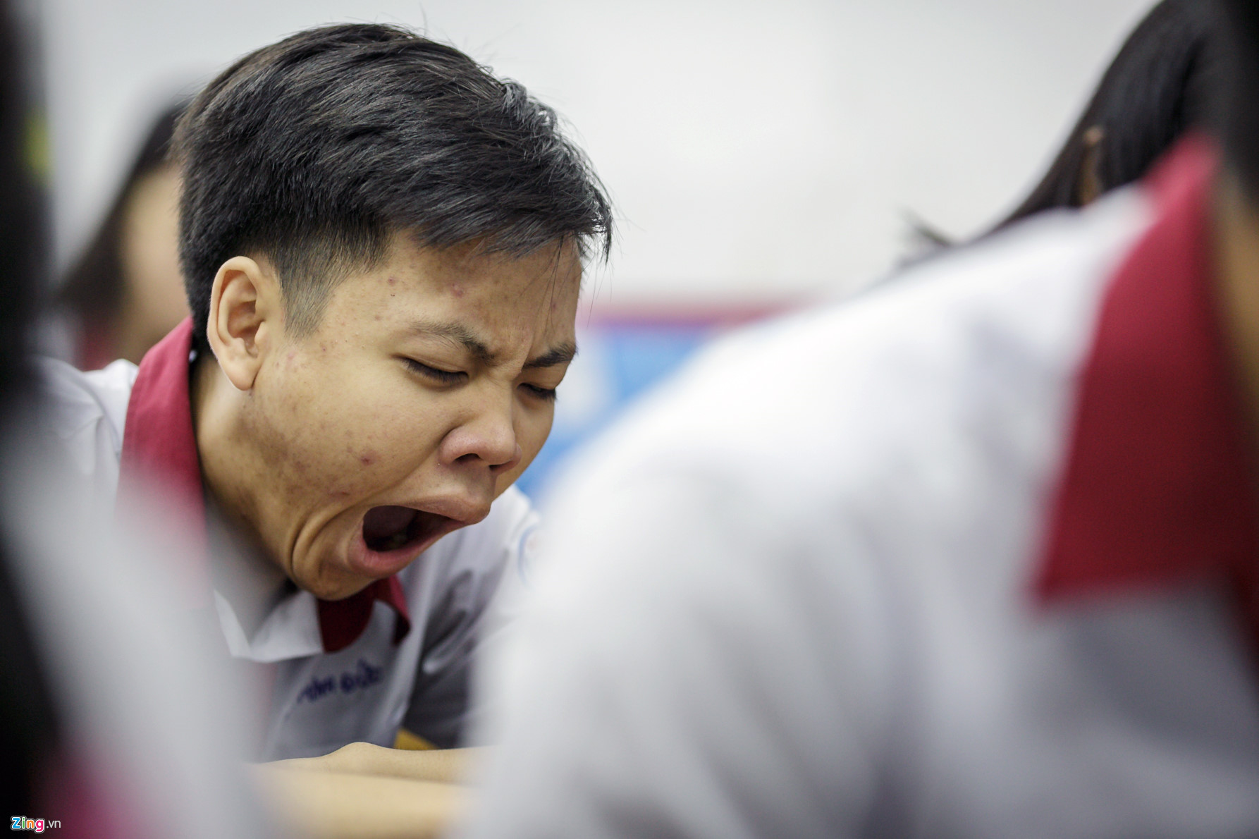 Gương mặt phờ phạc của nhiều học sinh nam trước giờ học buổi chiều.