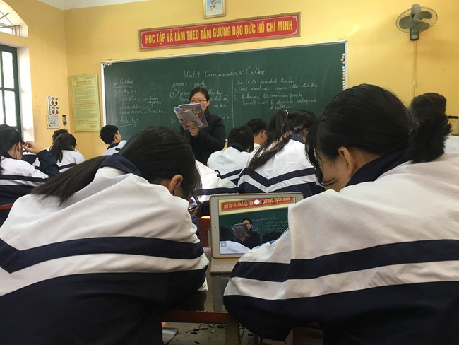 Hình ảnh nữ sinh zoom to cô giáo và bảng đen bằng camera máy tính bảng khiến cư dân mạng không khỏi “trầm trồ ngưỡng mộ”