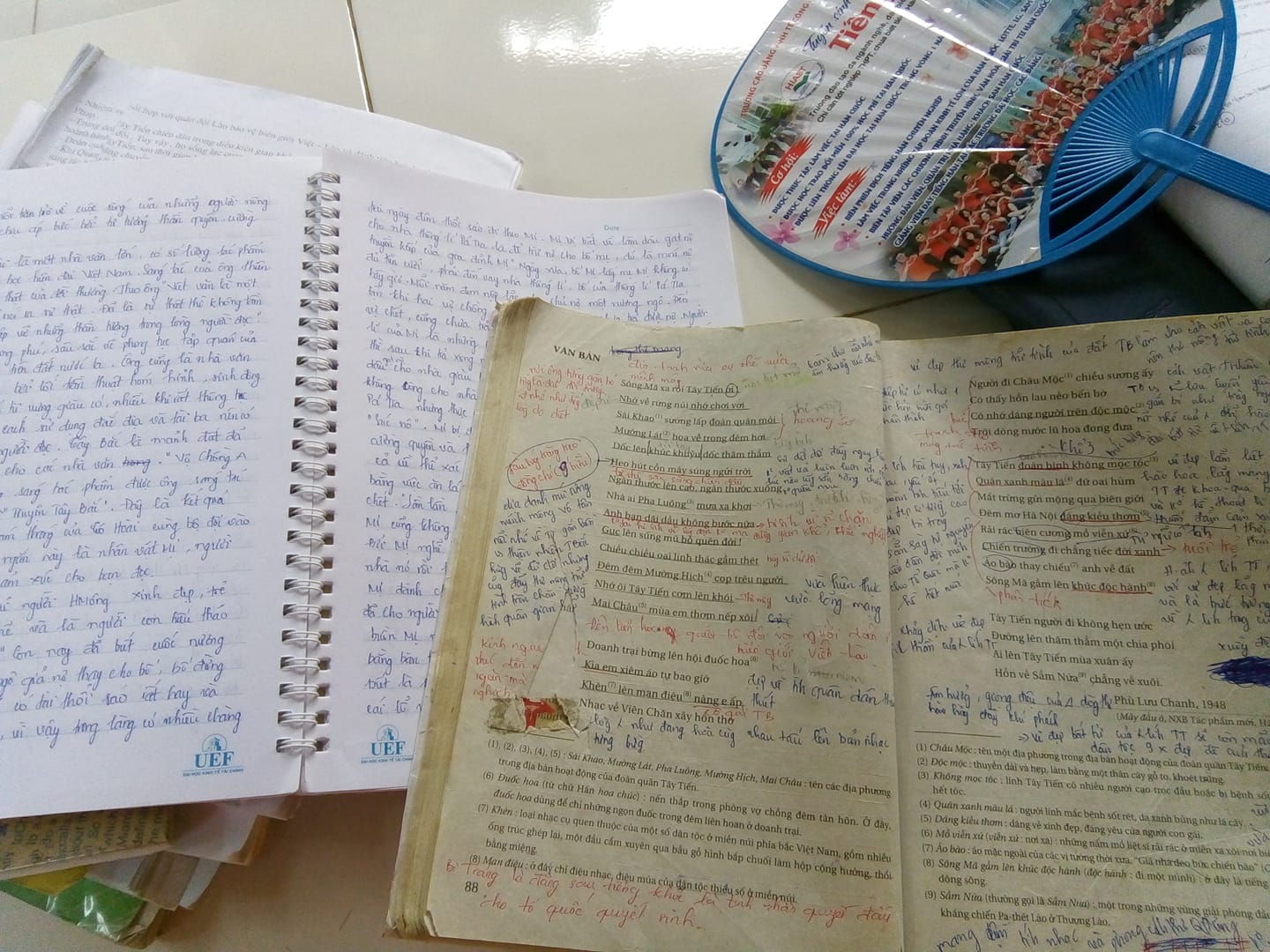 Nguyễn Thị An Giang viết: “Thực ra, chẳng cần chuyên văn đâu, cứ mùa ôn thi đến, sách của mình cũng chi chít chữ như này”.
