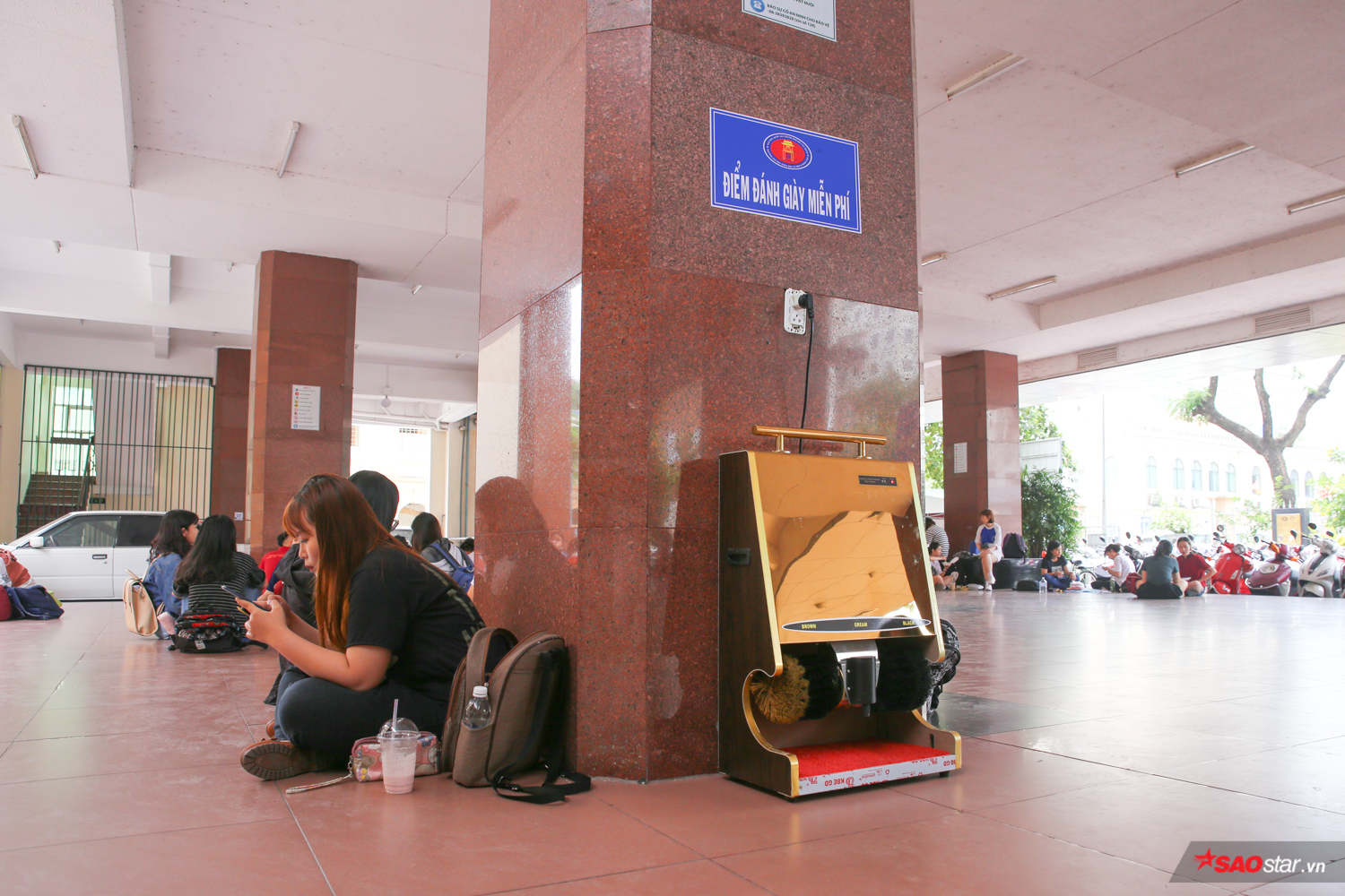 Địa điểm gắm máy đánh giày nằm ngay sảnh D, nơi nhiều sinh viên thường xuyên qua lại nhất