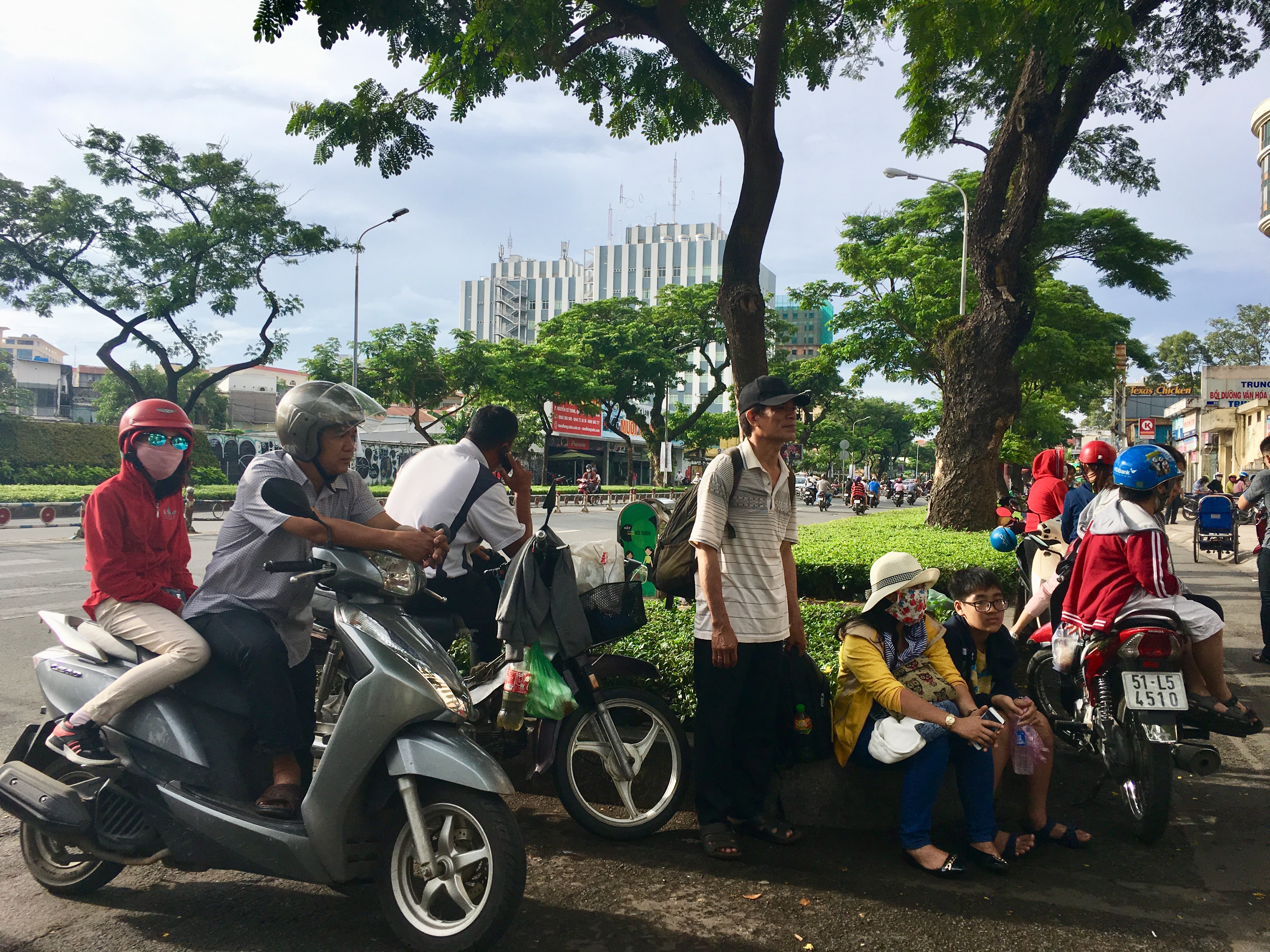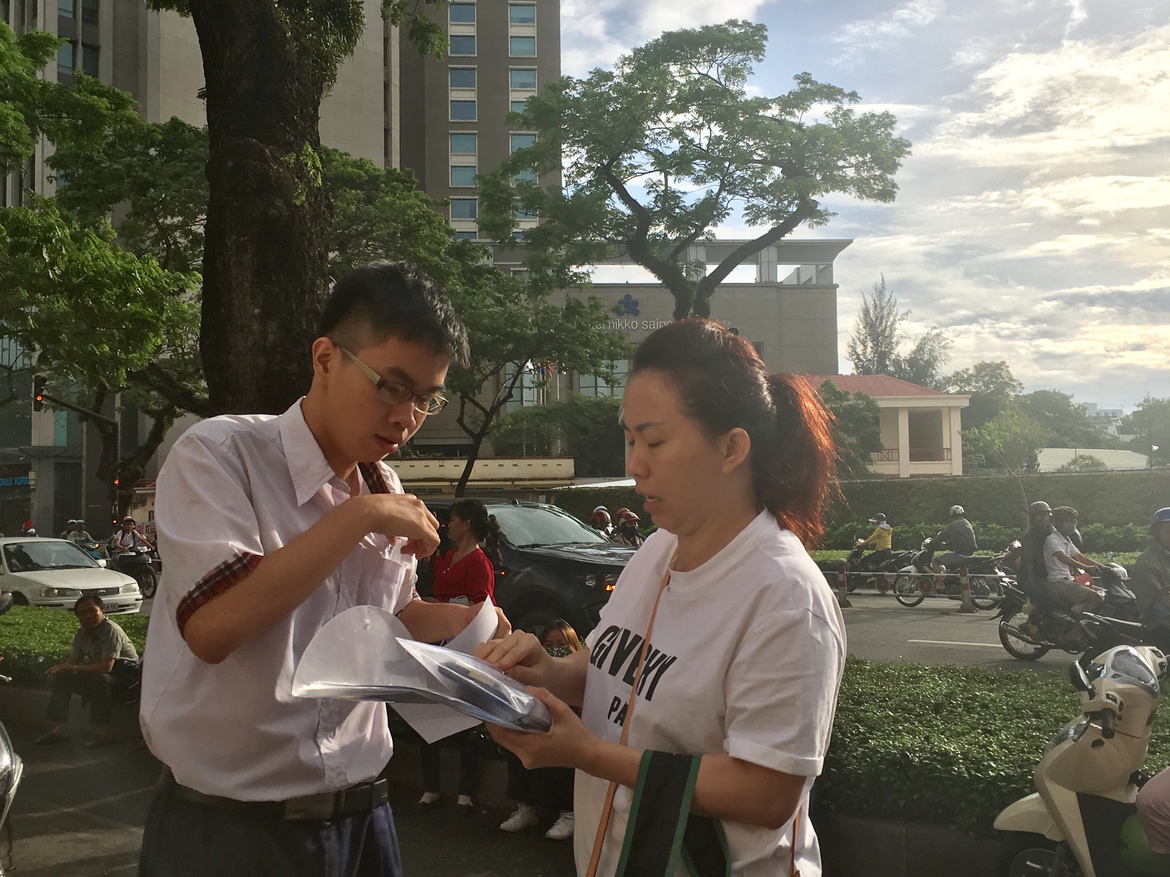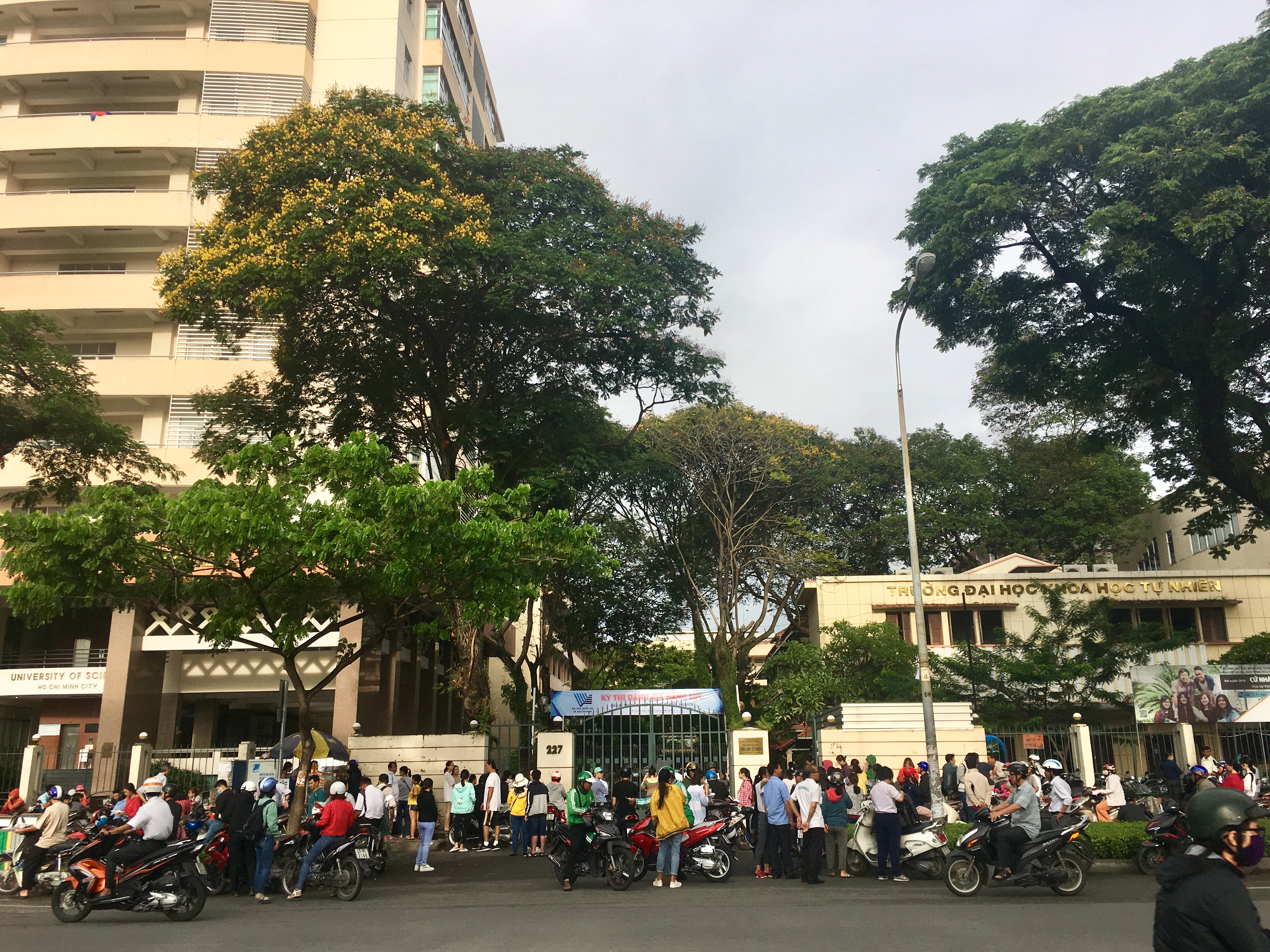 Các phụ huynh đến từ nhiều tỉnh thành trong cả nước đưa con đến điểm thi tại TP.HCM.