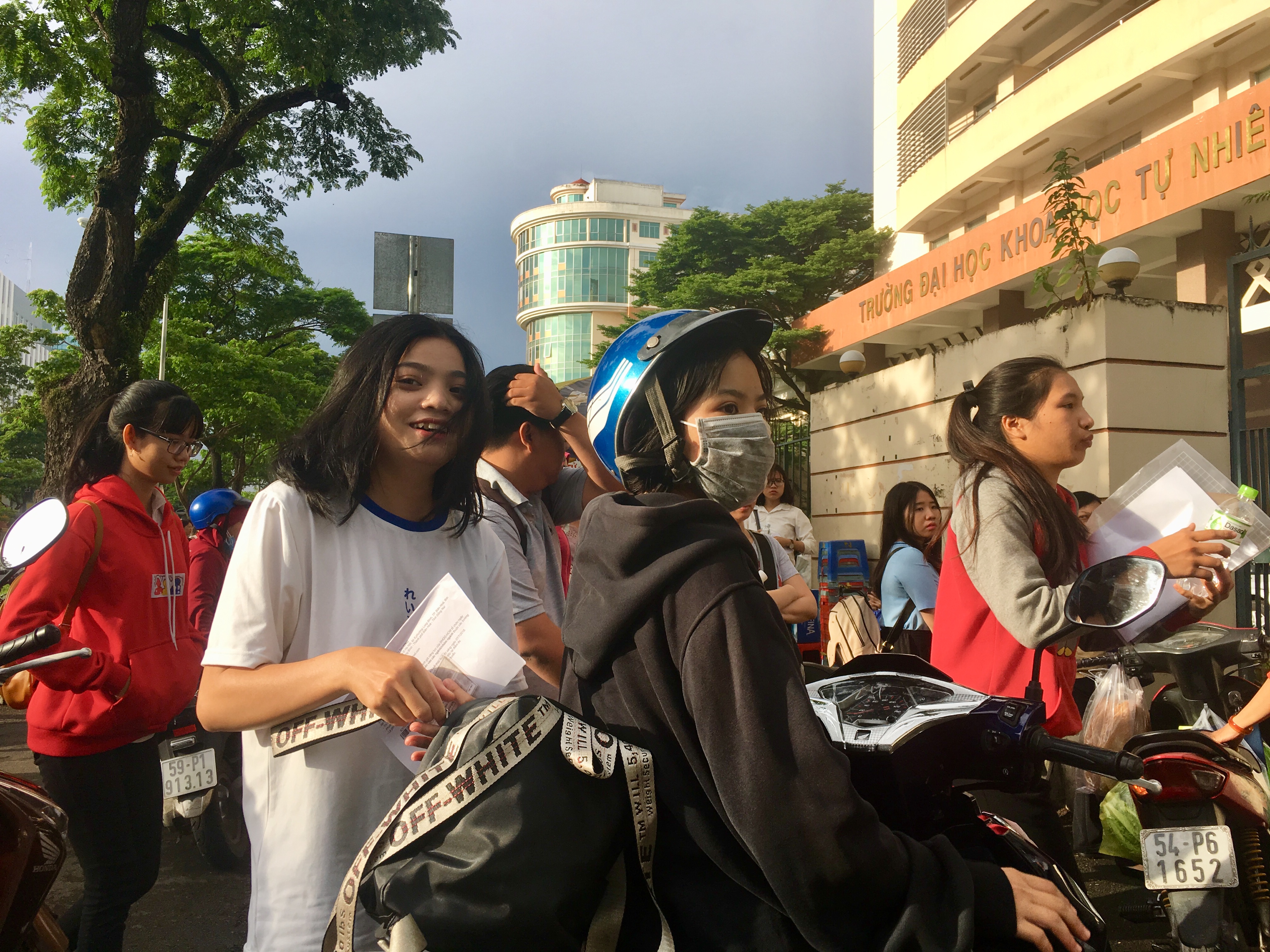 Thí sinh hào hứng chuẩn bị bước vào phòng thi DGNL của ĐHQG TP.HCM.