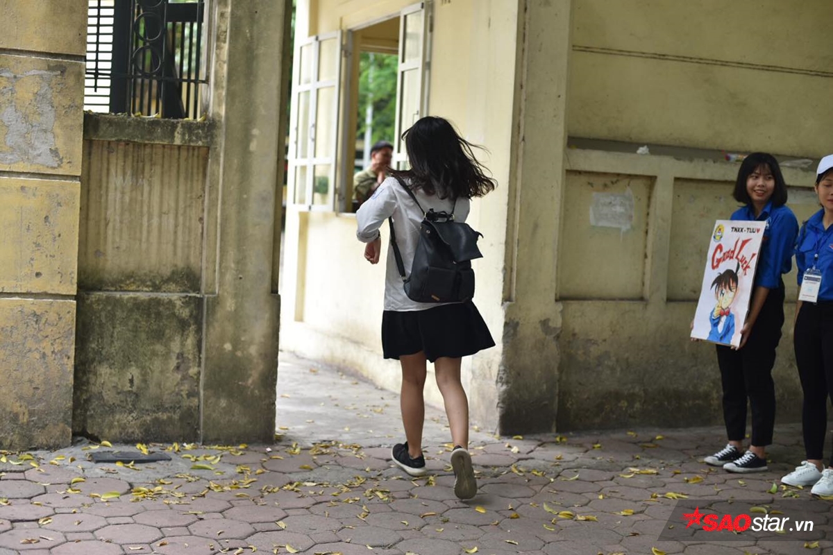 Thí sinh đặc biệt hối hả vào phòng thi tại điểm trường THPT Việt Đức.