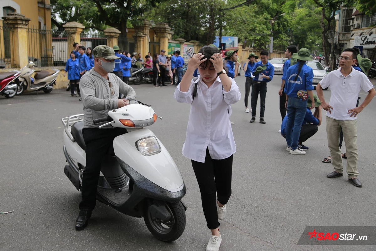 Ở phía bên ngoài cổng trường, các bậc hụ huynh cũng tỏ ra rất lo lắng. Ca thi chiều nay ngắn hơn, chỉ kéo dài 90 phút nên nhiều người quyết định ở lại chờ con và không ra về như buổi sáng.