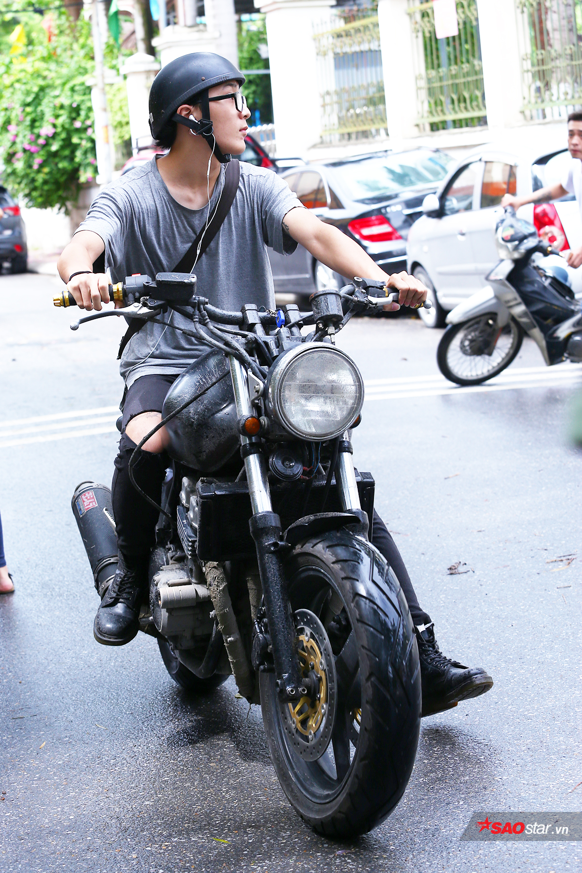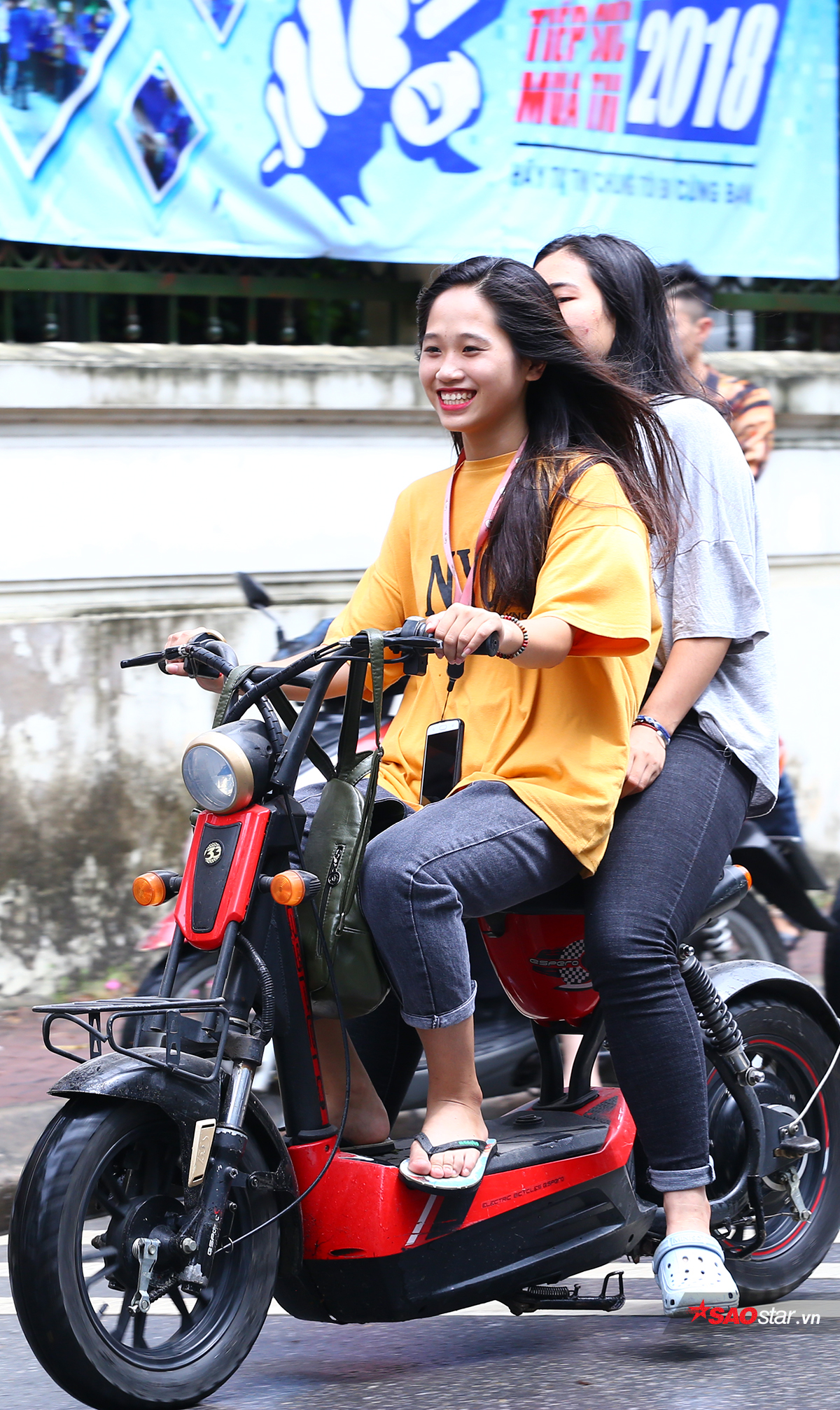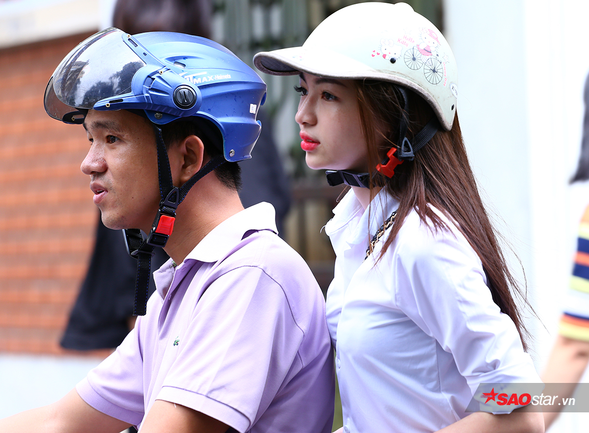 Một nam sinh gây ấn tượng khi cưỡi moto phân khối lớn đến trường thi.