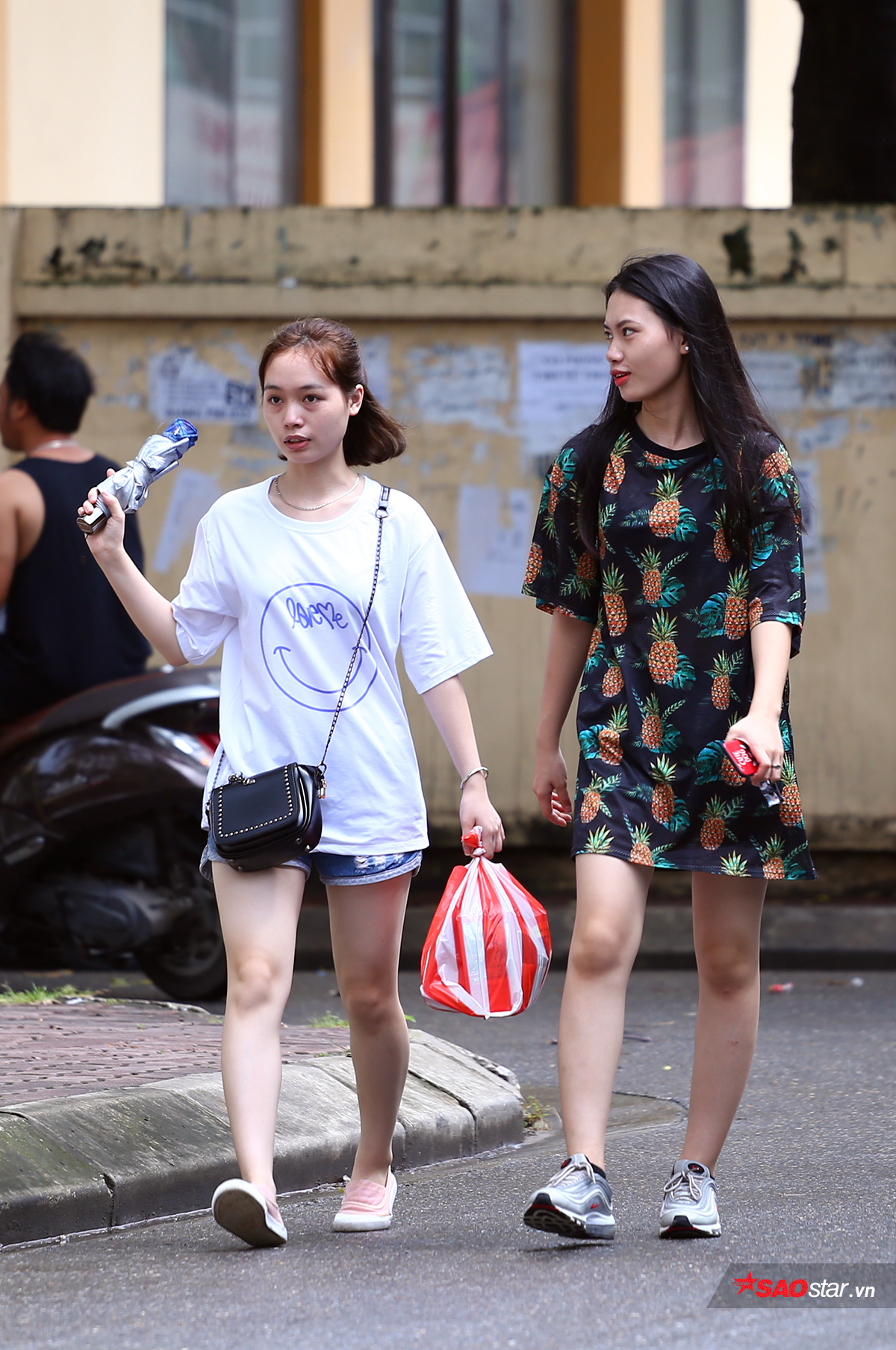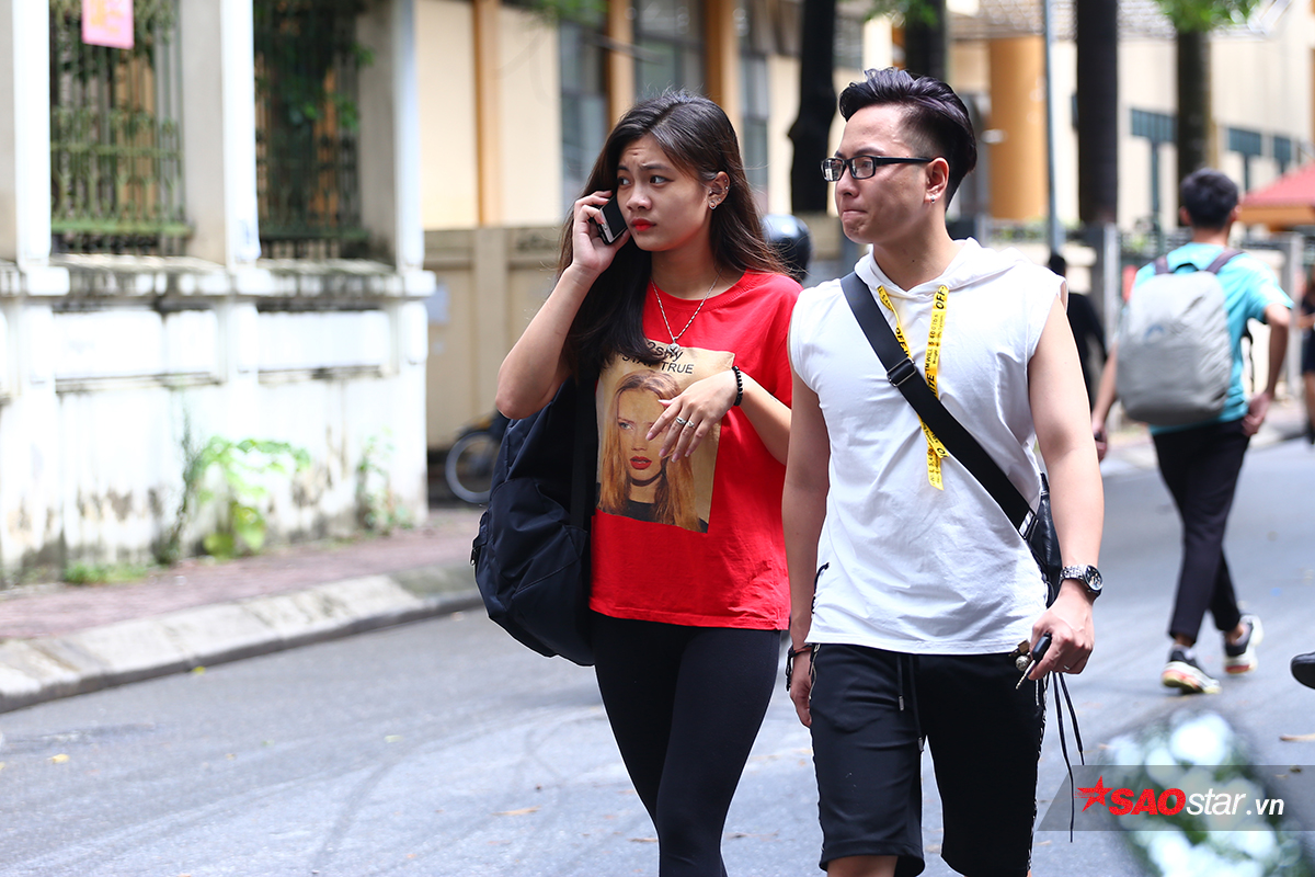 Chiều 15/7, khoảng gần 100 thí sinh tham dự buổi làm thủ tục thi năng khiếu vào các khoa của Đại học Sân khấu - Điện ảnh Hà Nội. Không giống các trường khác, thí sinh thi vào trường Sân khấu - Điện ảnh được mặc trang phục tùy chọn, khá thoải mái. Nhiều nam sinh mặc quần ngố, còn nữ sinh mặc váy hoặc phong cách “giấu quần” gợi cảm.