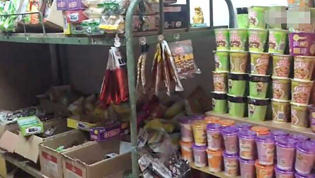 Căn phòng ký túc xá chỉ khoảng 10 m2 chất đầy mì cốc và đồ ăn nhẹ của 4 nam sinh. (Nguồn: News.ifeng.com)