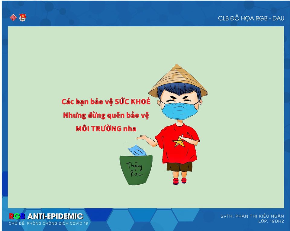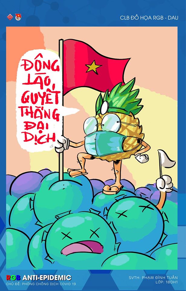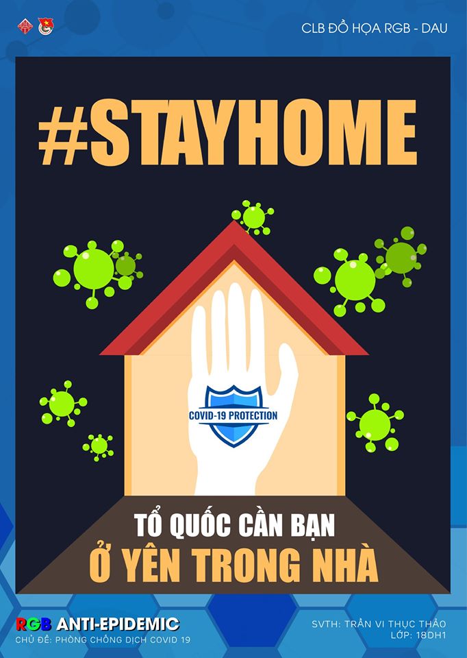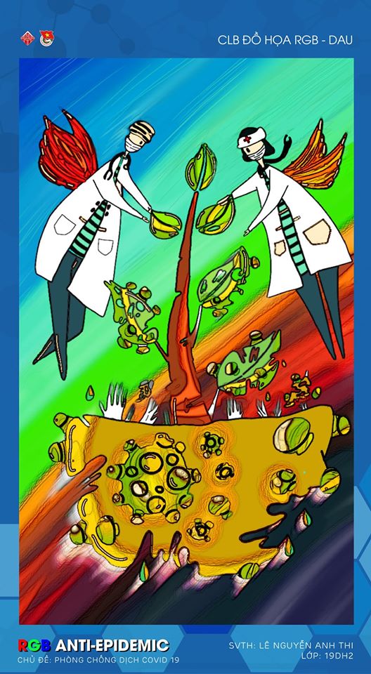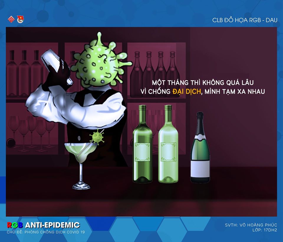 Với mong muốn góp chút sức mình trong cuộc chiến mà mỗi cá nhân đều là chiến sĩ trên mặt trận chống dịch, các bạn sinh viên CLB Đồ họa RGB Trường Đại học Kiến trúc Đà Nẵng đã cùng nhau thực hiện các tác phẩm, poster tuyên truyền góp phần nâng cao ý thức người dân về việc cách ly, giãn cách xã hội, cũng như bày tỏ sự biết ơn với những người đang xông pha chống dịch nơi tuyến đầu. Mỗi hình ảnh là một thông điệp!