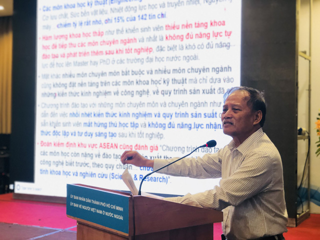 Phó giáo sư, Tiến sĩ Nguyễn Thiện Tống - kiều bào Mỹ, giảng viên Bộ môn Kỹ thuật hàng không Trường ĐH Bách khoa TPHCM cũng nhận định chương trình đào tạo các ngành khoa học kỹ thuật của nước ta quá lạc hậu so với các nước tiên tiến.