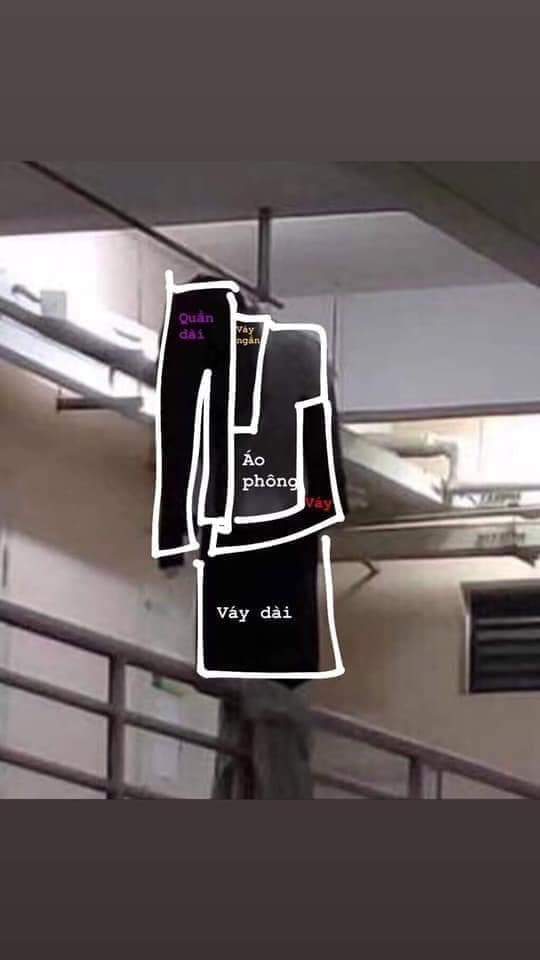 Ngay sau đó, chủ nhân của bức ảnh gây hoang mang ấy đã lập tức giải thích về hình ảnh nói trên. Theo đó, tất cả đều là quần áo của sinh viên, cụ thể: màu đen ở ngoài cùng là quần dài, bên cạnh là chiếc váy ngắn màu đen, tiếp đến là áo phông, tiếp nữa là một chiếc váy và nằm trong cùng là một chiếc váy dài có màu tối.