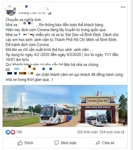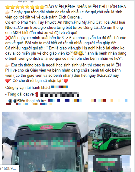 Không những thế, các nhà xe này còn quyết định chở cả giáo viên, bệnh nhân về quê miễn phí. Ảnh chụp màn hình