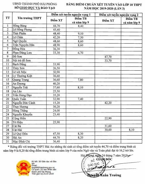 Đây là lần thứ 3 danh sách điểm chuẩn vào lớp 10 này được công bố và cũng là lần thứ 2 được điều chỉnh. Trước đó vào ngày 17/7, Sở GD-ĐT Hải Phòng cũng đã ra thông báo và tiến hành điều chỉnh điểm chuẩn vào lớp 10 lần 1.