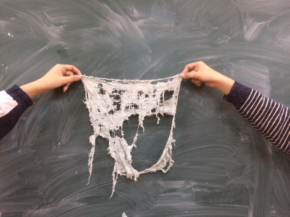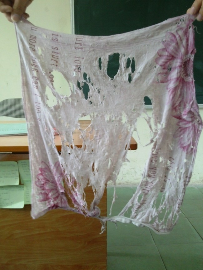 Từng là một chiếc khăn mỹ miều, ấy vậy mà qua bao nhiêu mùa trăng, qua bao nhiêu “phản ứng hóa học” của phấn, nước giặt…, chiếc giẻ lau bảng đã trở nên như vậy.