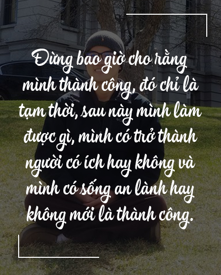 Nếu có lời khuyên cho các bạn trẻ thì mình chỉ nói rằng đừng bao giờ cho rằng mình thành công, đó chỉ là tạm thời, sau này mình làm được gì, mình có trở thành người có ích hay không và mình có sống an lành hay không mới là thành công.