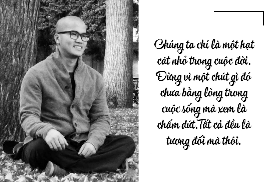 Mình chưa bao giờ nghĩ mình thành công gì cả. Việc xa quê là một điều mình khá quen thuộc. Vì khi đi tu thì mình rời gia đình vào chùa ở, khi đi học ở Thái Lan thì mình rời Việt Nam. Khi học Thạc sĩ ở đây thì mình càng đi xa hơn nữa. Ban đầu cũng hơi buồn nhưng dần dần việc học chiếm hết thời gian và mình quen dần với môi trường sống nên cũng đỡ phần nào.