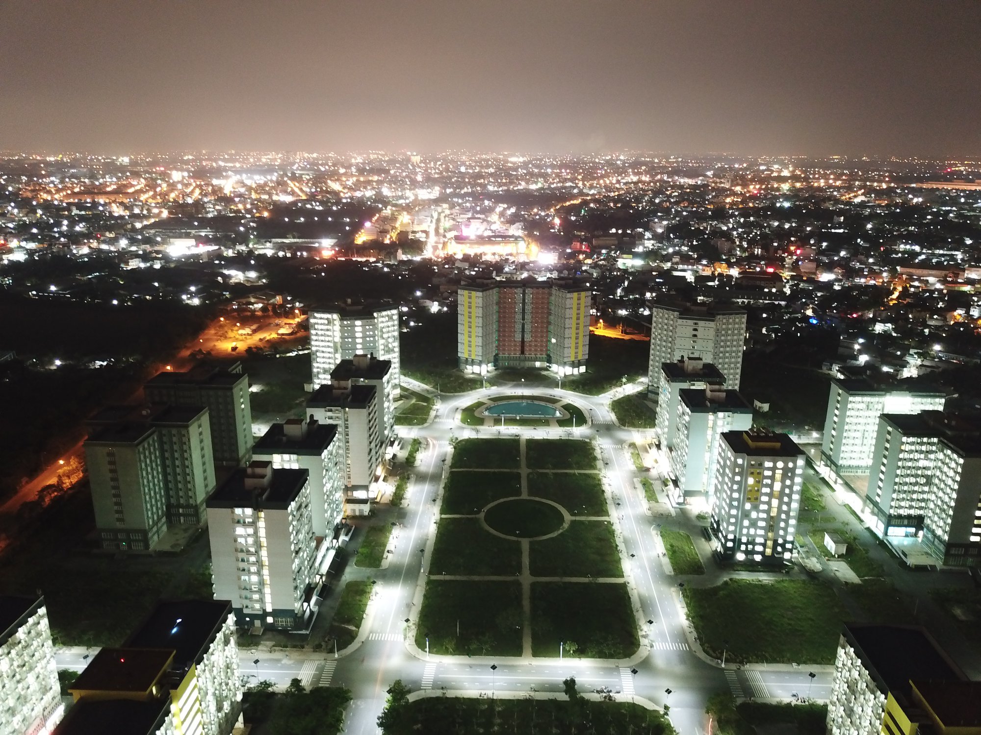 Kỹ túc xá ở làng đại học Thủ Đức nhìn vào ban đêm.