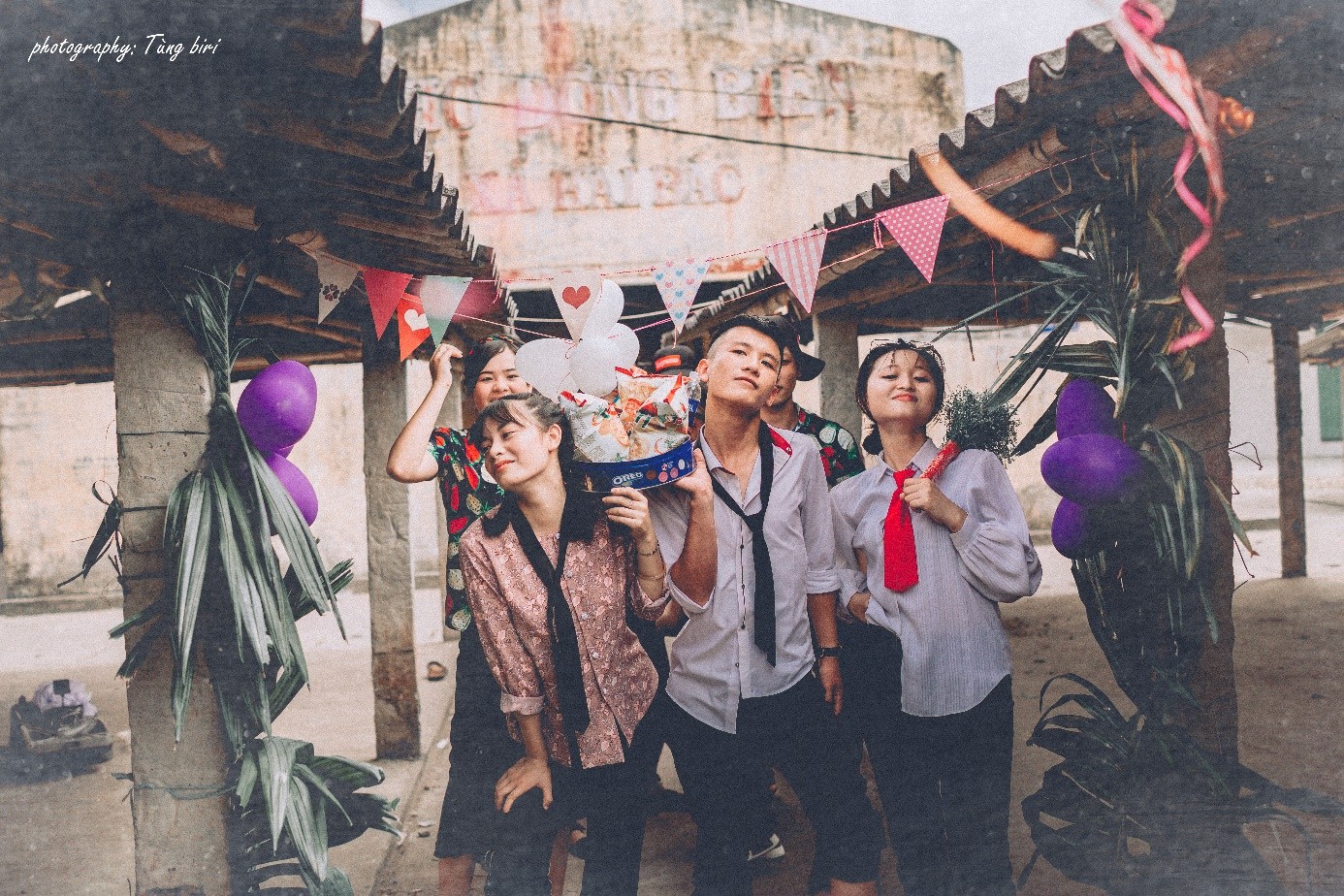 Trong số đó, bộ ảnh kỷ yếu siêu độc của học trò lớp 12A3 trường THPT Trần Quốc Tuấn, Hải Hậu, Nam Định đã đặc biệt gây chú ý. Các thành viên của lớp này đã cho “ra lò”mang chủ đề độc đáo là “đám cưới miền quê” cho 2 bạn trong lớp.