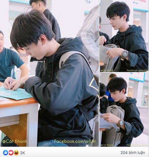 Ngay sau khi những hình ảnh này xuất hiện trên mạng xã hội ngay lập tức thu hút sự quan tâm chú ý của cộng đồng mạng. Rất nhiều nữ sinh đã rung rinh trước ngoại hình điển trai của nam sinh này, tất nhiên, nhiều người cũng không bỏ qua màn xin “info” để tiện theo dõi và liên lạc.