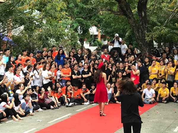 Đức Dương gây “náo loạn” sân trường với những bước catwalk “thần sầu” của mình.