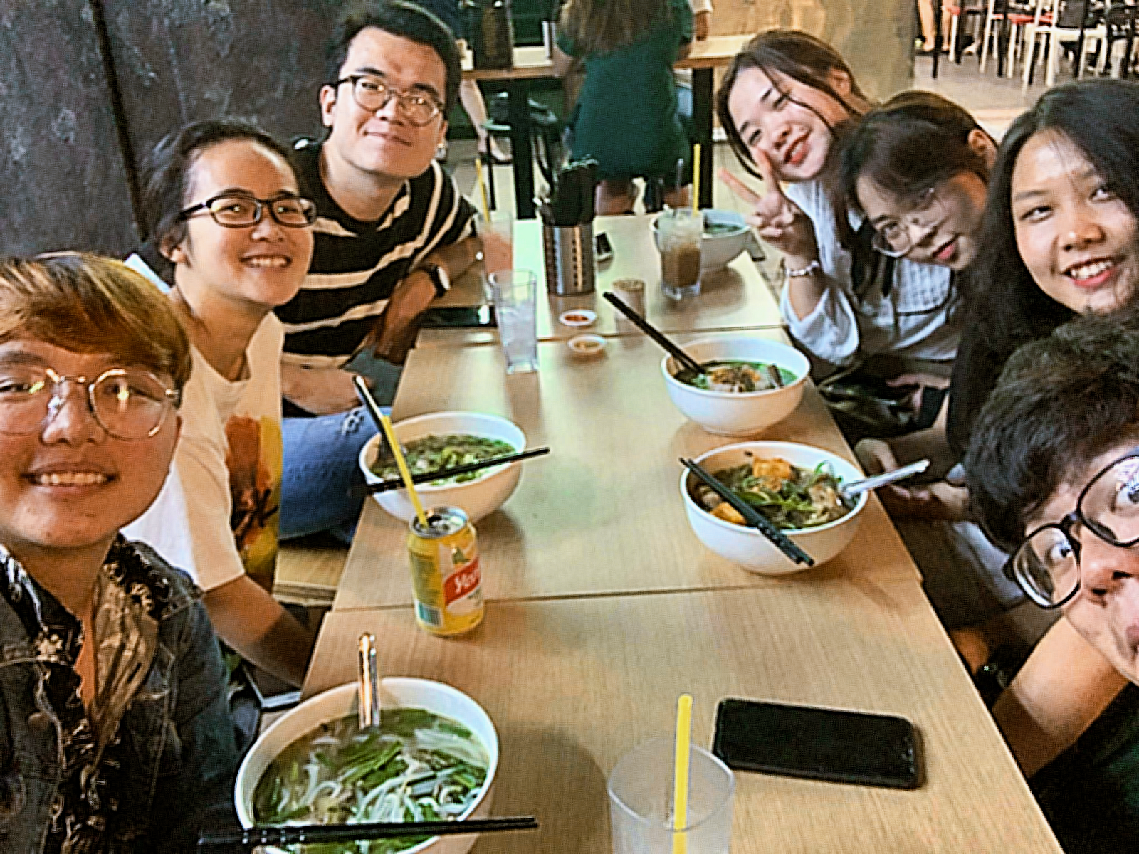 Một nhóm bạn người Việt đến từ nhiều trường khác nhau cùng tụ họp để ăn Tất niên sớm