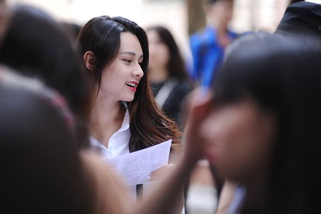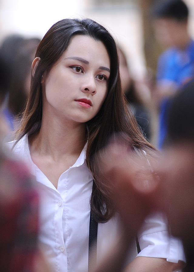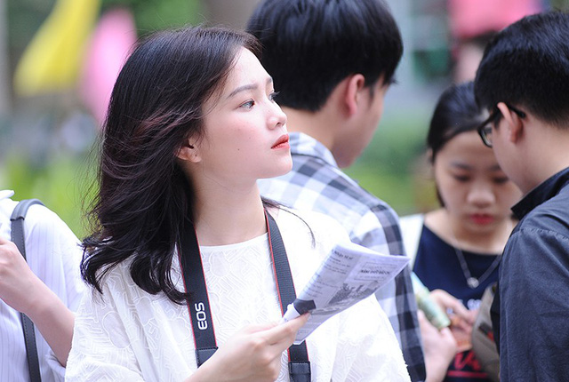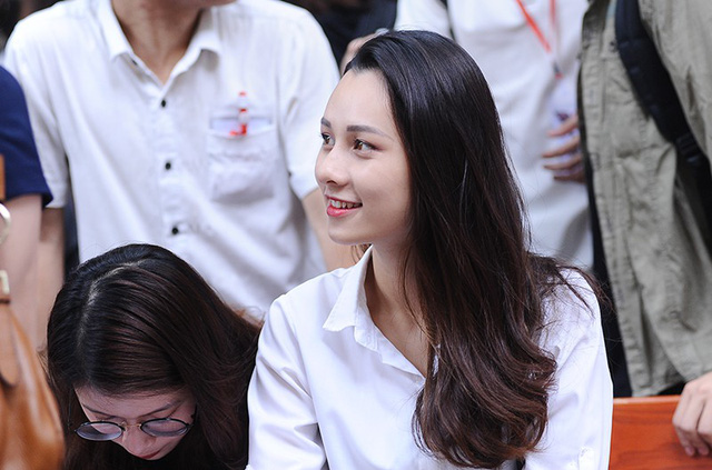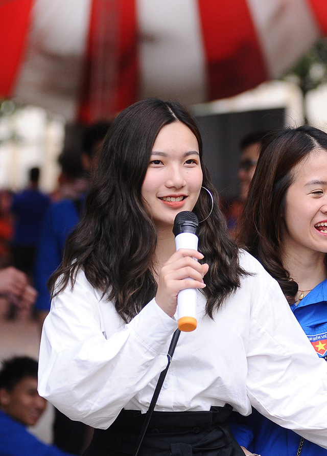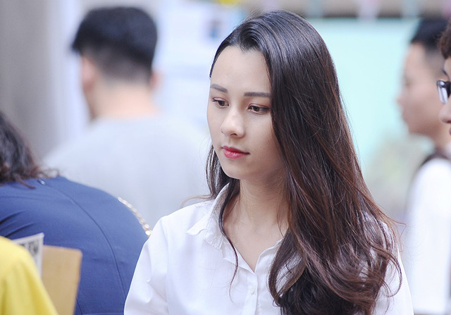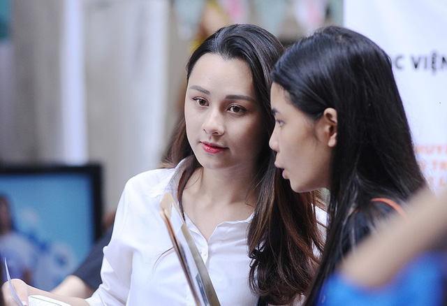 Đó chính là Nguyễn Thu Trang - Miss Áo dài Press Beauty 2018. Thu Trang đang là sinh viên năm 3 khoa Phát thanh - Truyền hình. Với kinh nghiệm của mình, Thu Trang đã nhiệt tình tư vấn cho các em học sinh. Vẻ rạng rỡ, xinh đẹp của cô nàng đã khiến nhiều người thiện cảm.