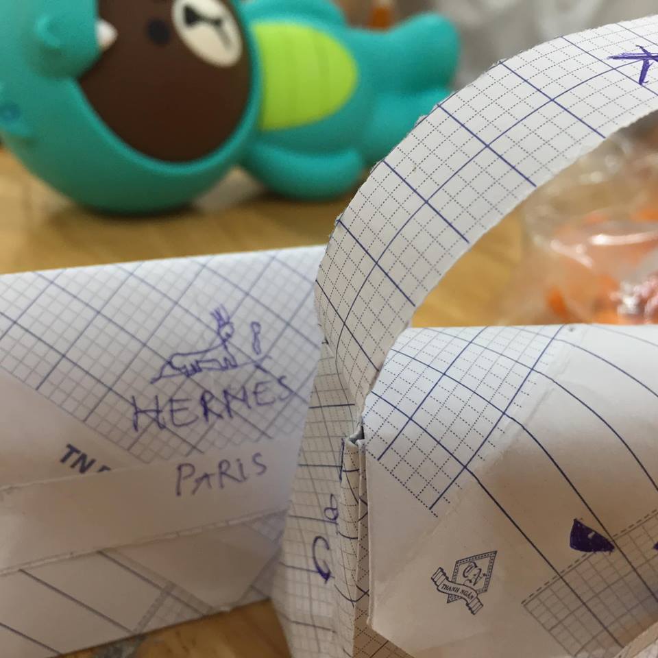 Theo đó, những chiếc túi hàng hiệu khiến hàng triệu cô gái trên thế giới “liêu xiêu” được cậu bạn này “tái hiện” bằng giấy ô ly siêu chất, thậm chí còn kết hợp hàng chục nhãn hàng nổi tiếng và cẩn thận ghi tên lên từng chiếc túi.