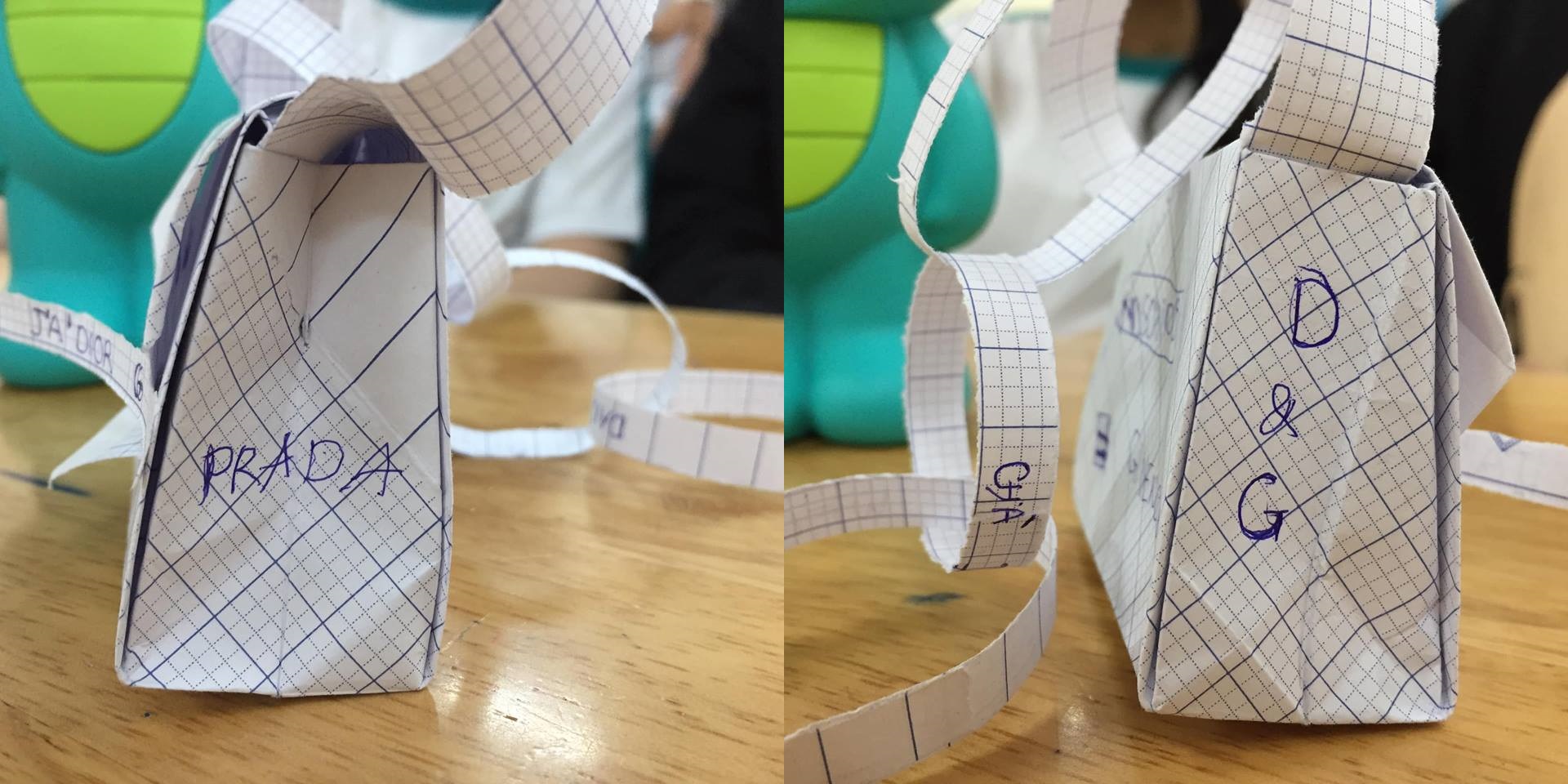Mới đây, một bạn học sinh THPT đã nghĩ ra một thú vui mới vượt qua những giờ học nhàm chán: tung ra bộ sưu tập túi xách hàng hiệu siêu chất từ giấy vở.