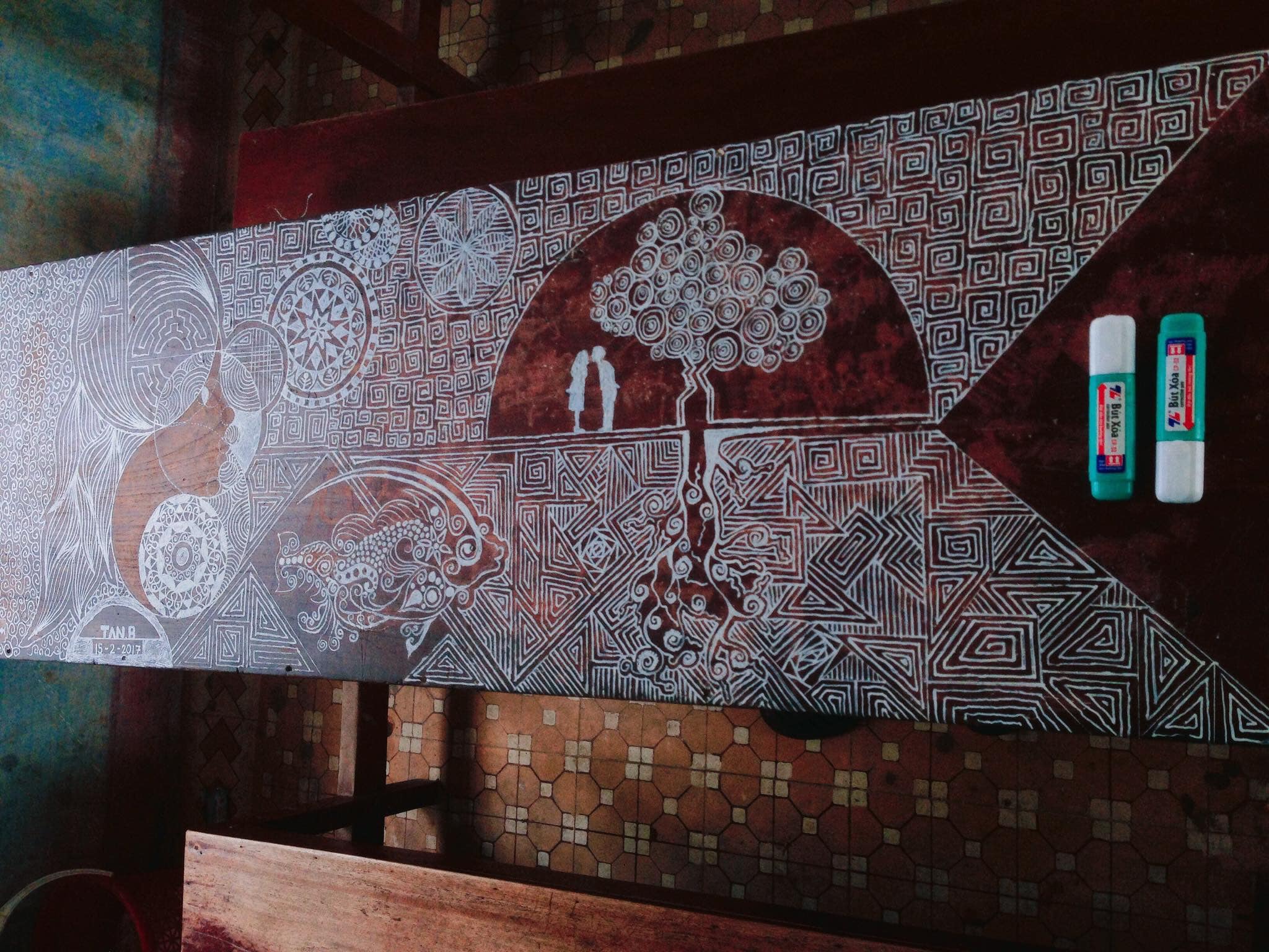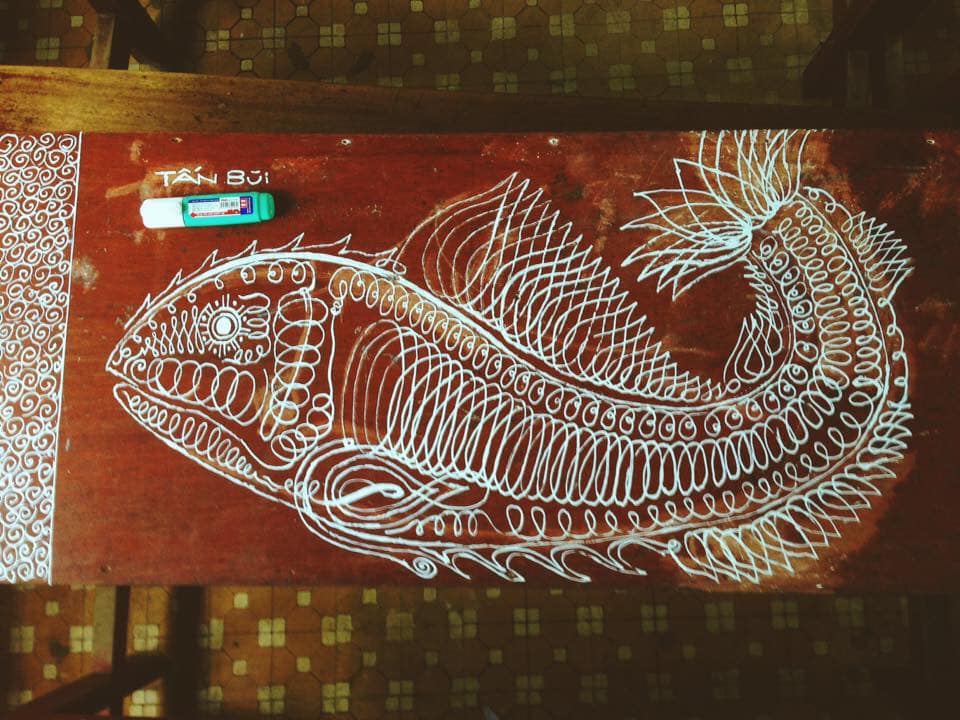 Văn Tấn chia sẻ thêm, sau nhiều năm học tập, mặt bàn học bị bôi bẩn với rất nhiều nét bút xóa cùng nhiều từ ngữ không văn minh nên cậu bạn quyết định “thay áo mới” cho mặt bàn. Tuy nhiên, muốn bắt tay vào việc vẽ, việc đầu tiên Tấn phải làm chính là cạo sạch những vết bẩn trên bàn, sau đó mới dùng bút xóa để vẽ lên.