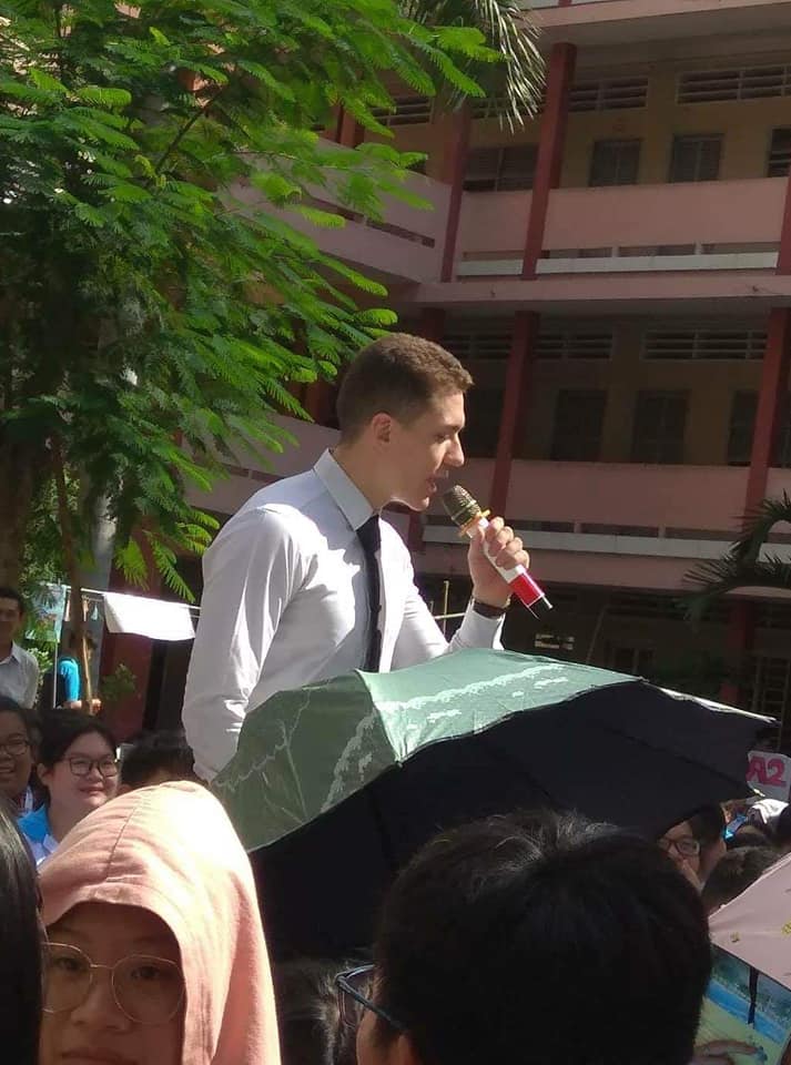 Thầy giáo này về giảng dạy tiếng Anh cho các bạn học sinh ở trường THPT Thủ Đức.