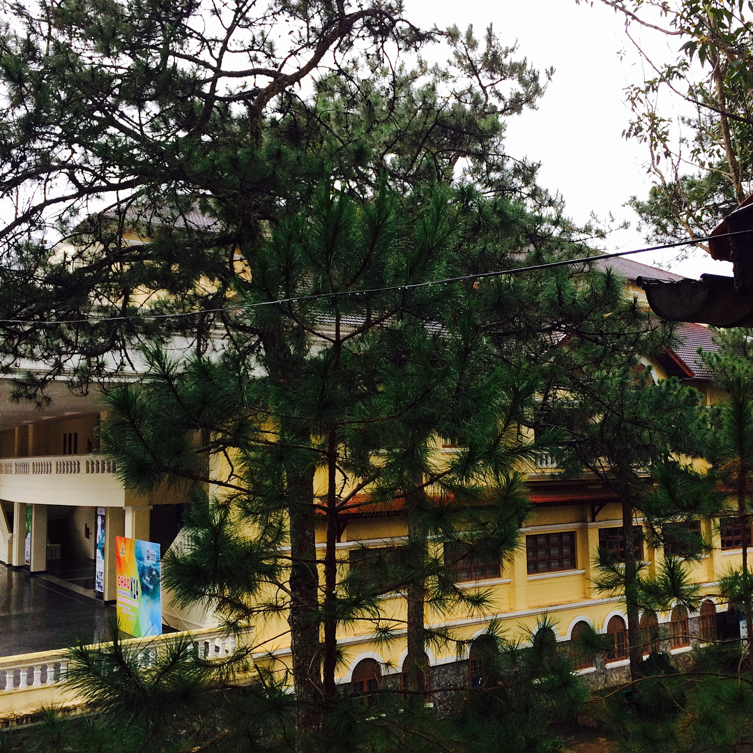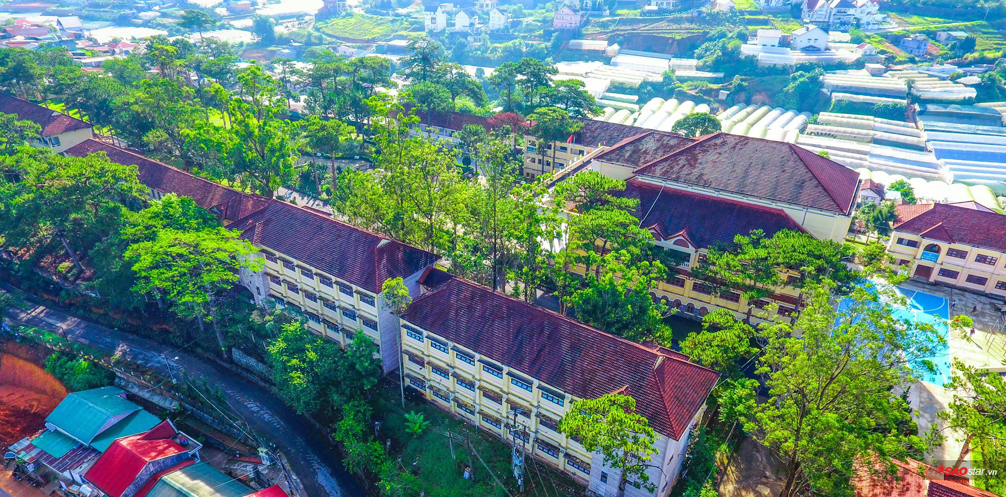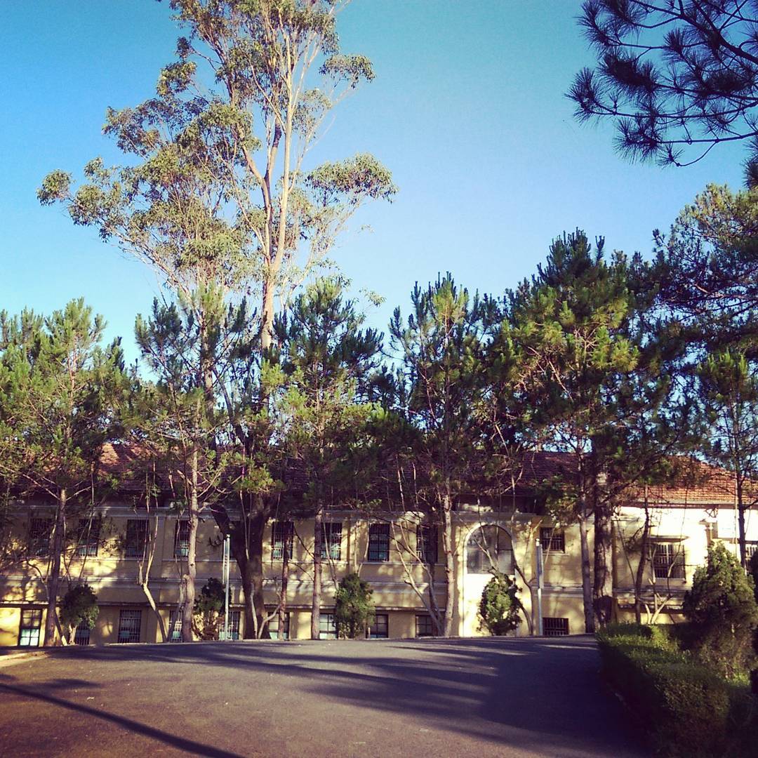 Tọa lạc trên một ngọn đồi, Trường tớ được ôm ấp bởi màu xanh ngút ngàn của thông và hoa lá. Những mái nhà ngói đỏ rêu phong, những dãy nhà không xây quá cao mà vẫn giữ được nét đẹp cổ điển, đặc trưng của kiến trúc Pháp. Sáng sớm, những cô cậu sinh viên với cặp sách, khăn len bước trong không gian sương bồng bềnh tới lớp, cả ngày tại đây sẽ là nắng lạnh vào buổi trưa, không gian mơ màng dưới nắng chiều dịu nhẹ cùng làn gió mát vẫy gọi thông reo.