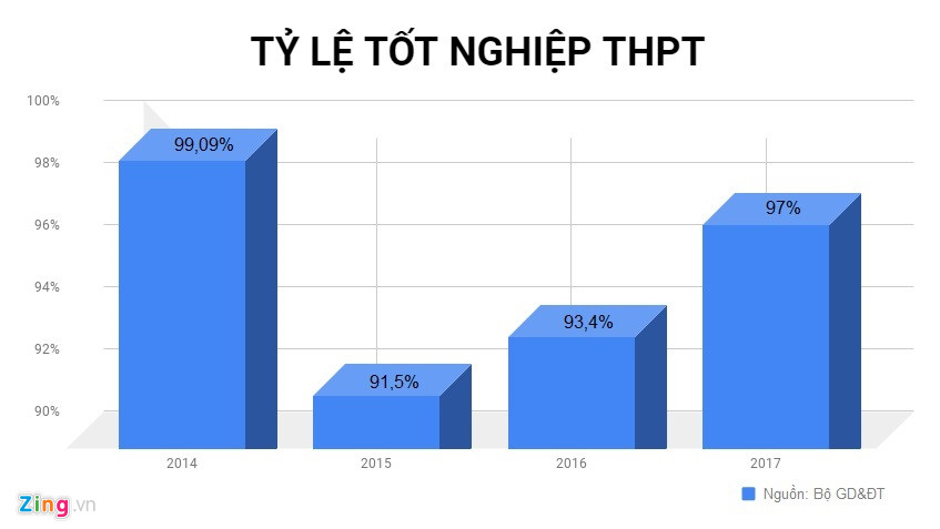 Tỷ lệ tốt nghiệp THPT của 4 năm gần đây. Ảnh: Nguyễn Sương.