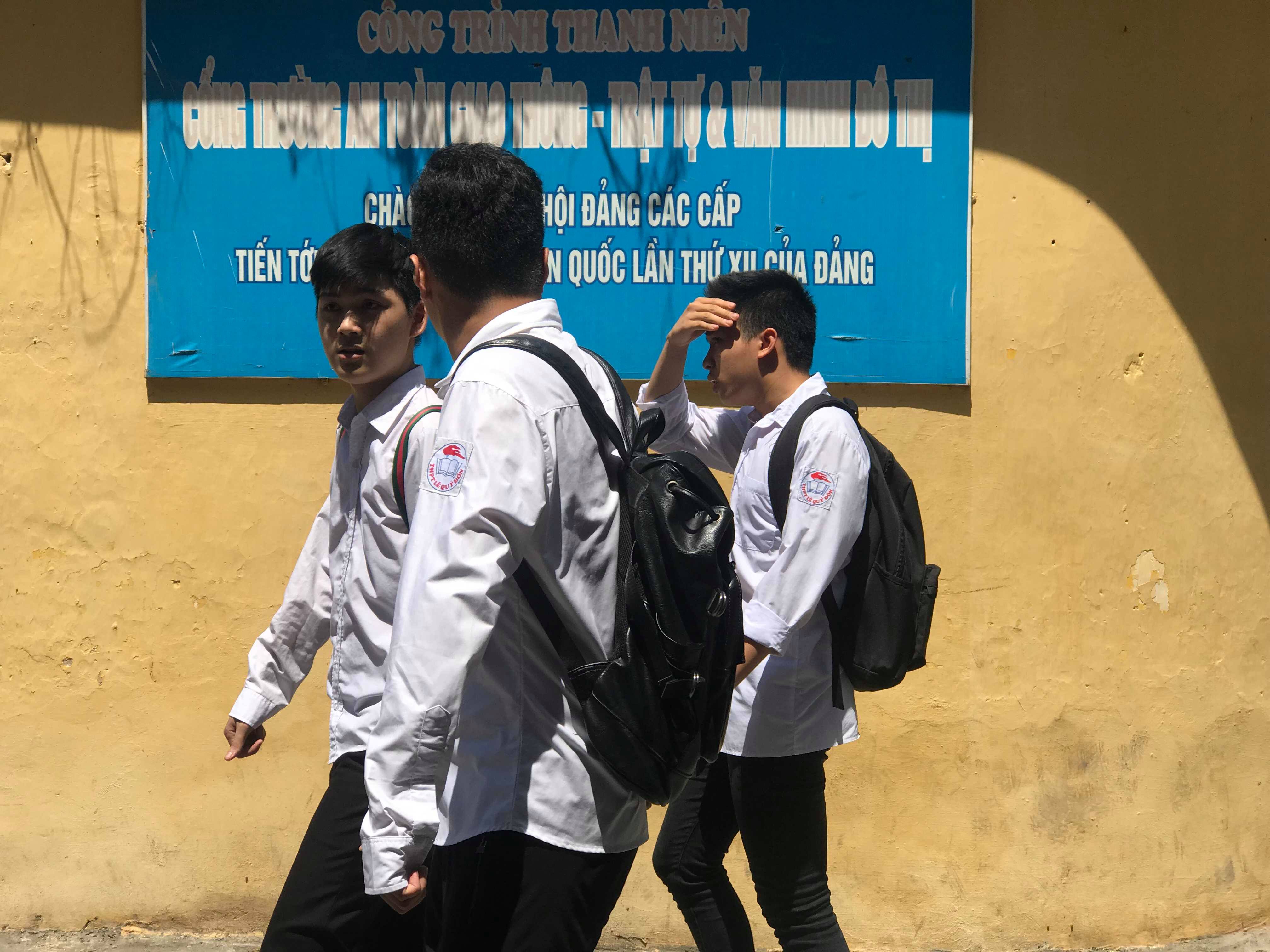 Những thí sinh ra khỏi phòng thi đầu tiên tại điểm thi THPT Trần Phú.