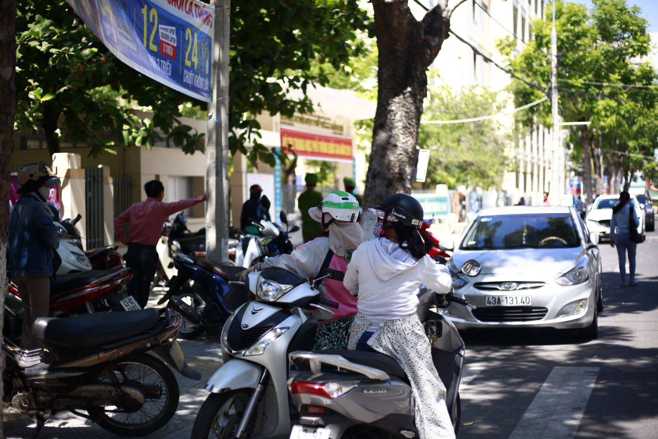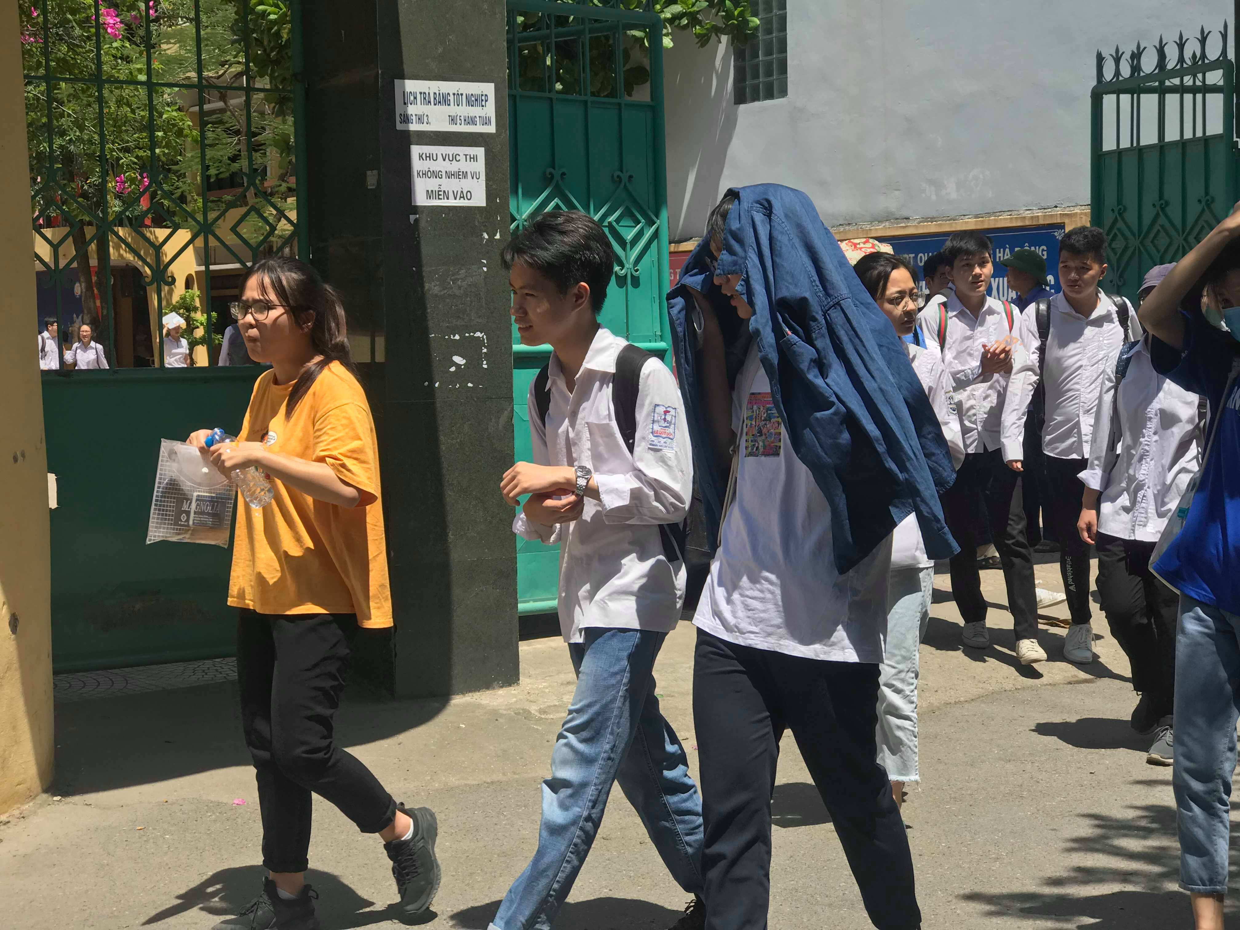 Phụ huynh đội nắng ngoài cổng trường đợi con sau buổi thi.
