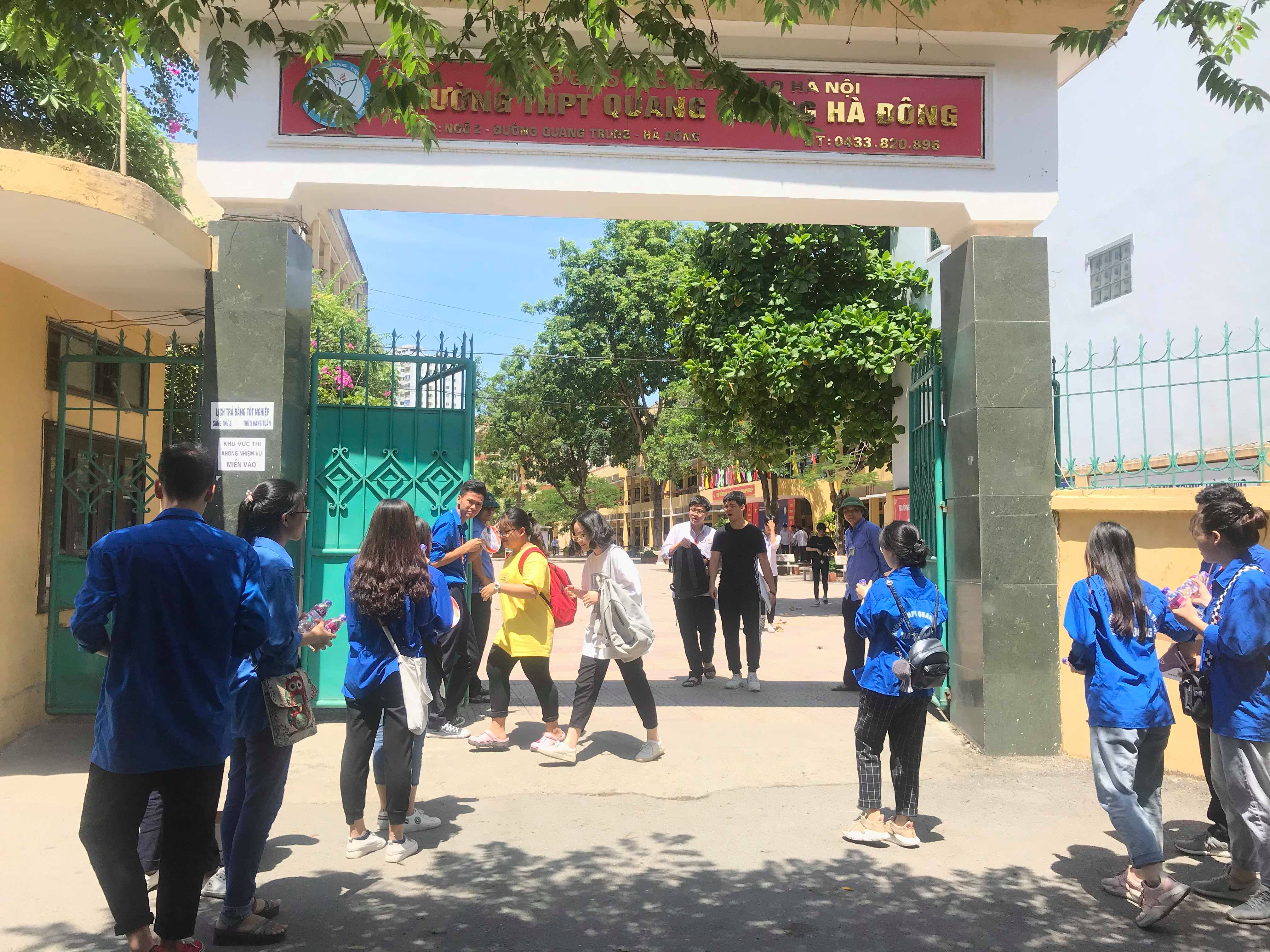 Các tình nguyện viên đợi sẵn các thí sinh ở ngoài cổng trường.