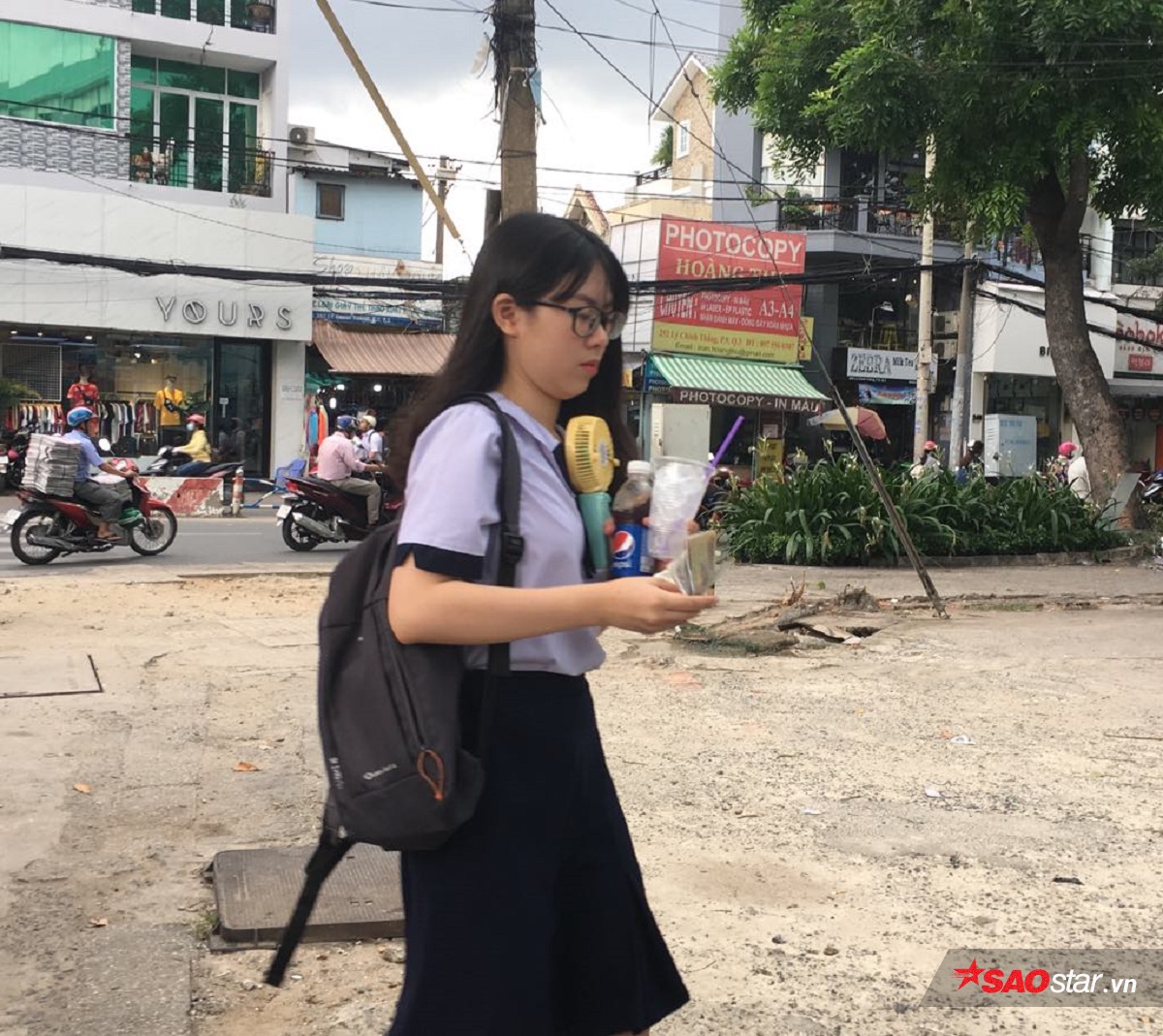 Cô bạn với phong thái tự tin bước vào trường.