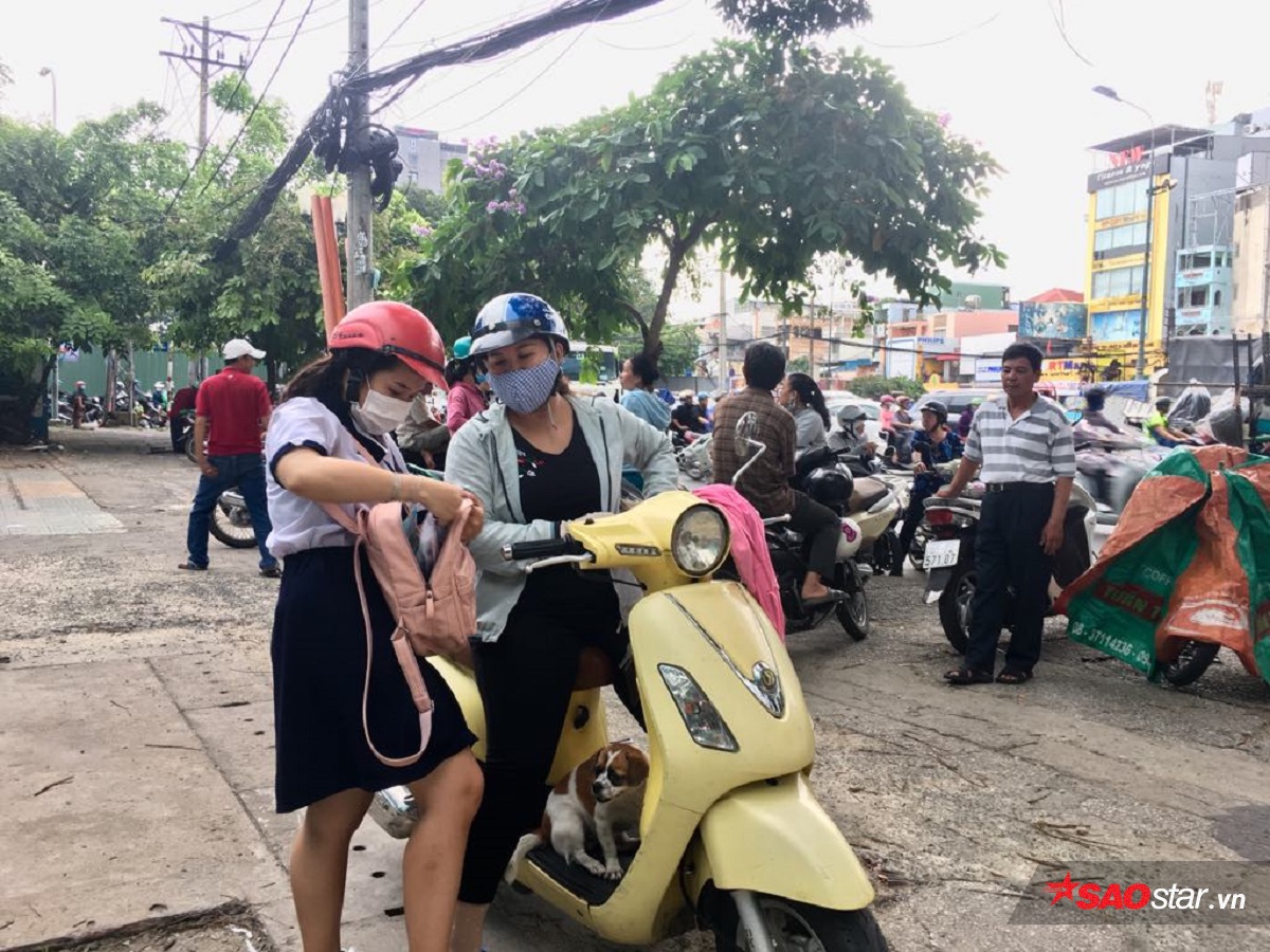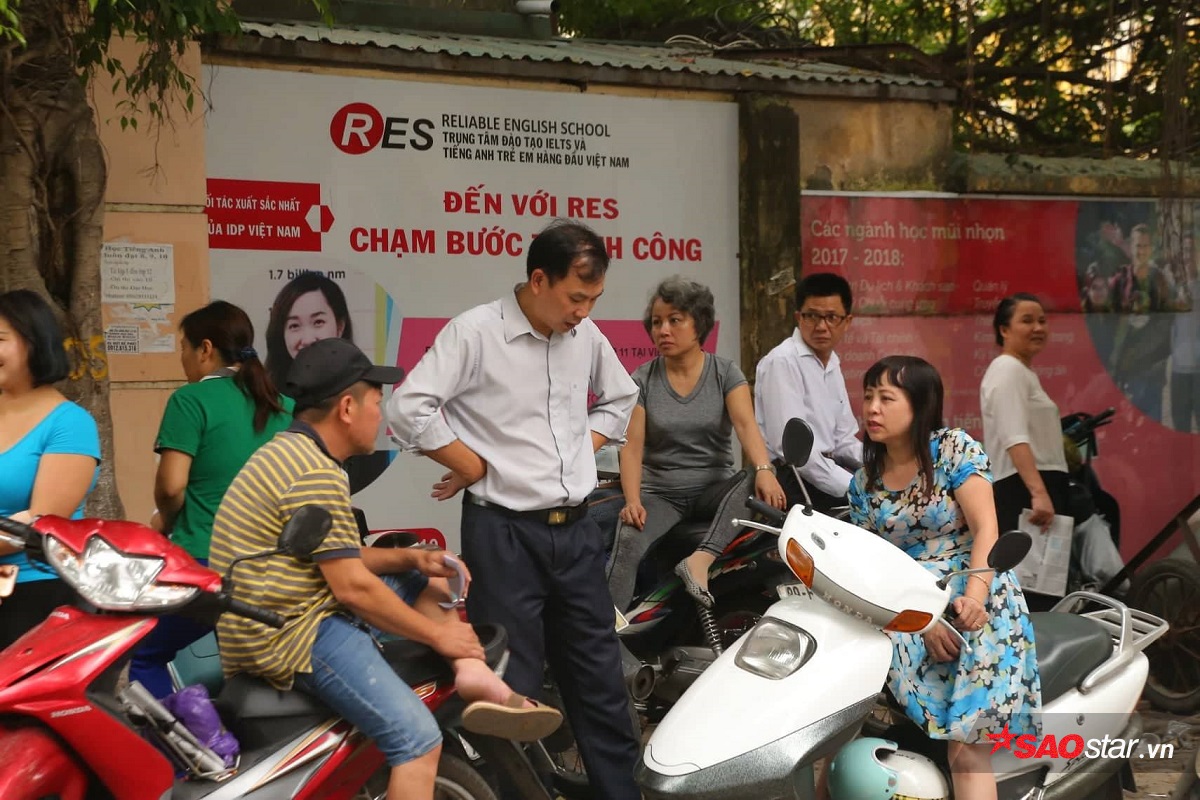 Rất nhiều phụ huynh đứng ngoài cổng trường đợi con cái.