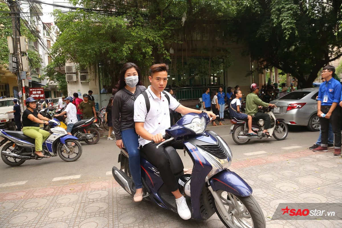 Có nhiều thí sinh tự đi xe máy đến điểm thi.
