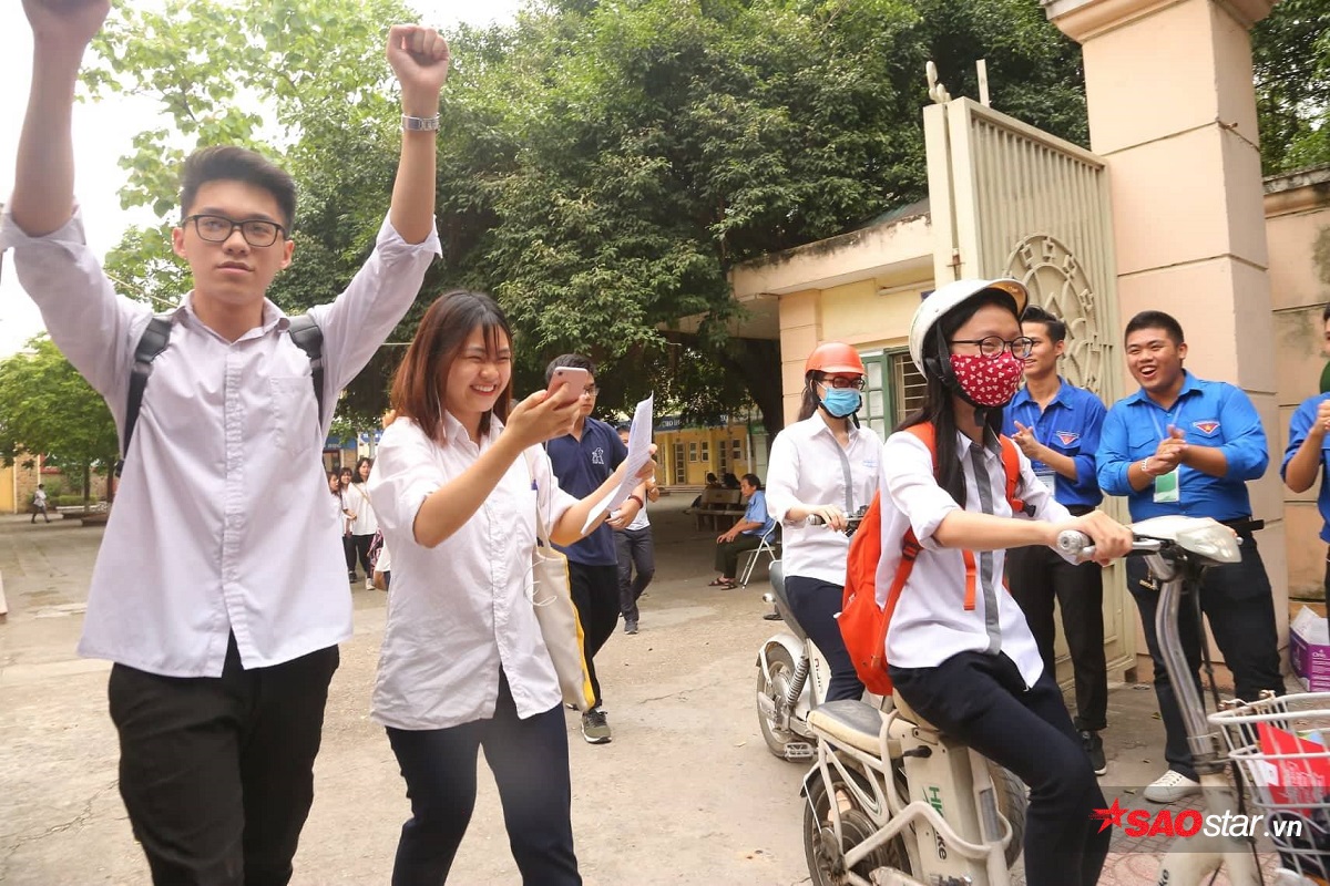 Các thí sinh thể hiện rõ niềm hân hoan trên gương mặt sau khi kết thúc môn Ngoại ngữ.