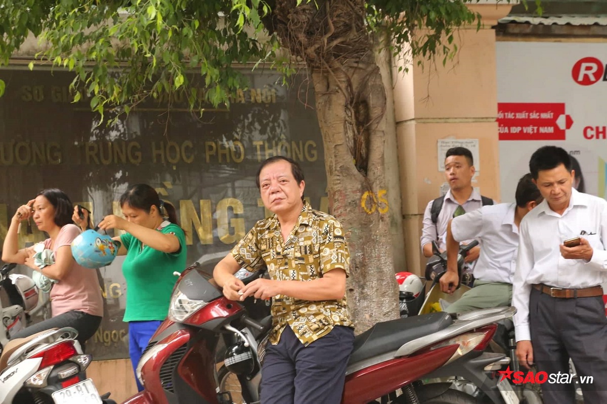 Ở ngoài cổng trường, nhiều phụ huynh đứng đợi con.