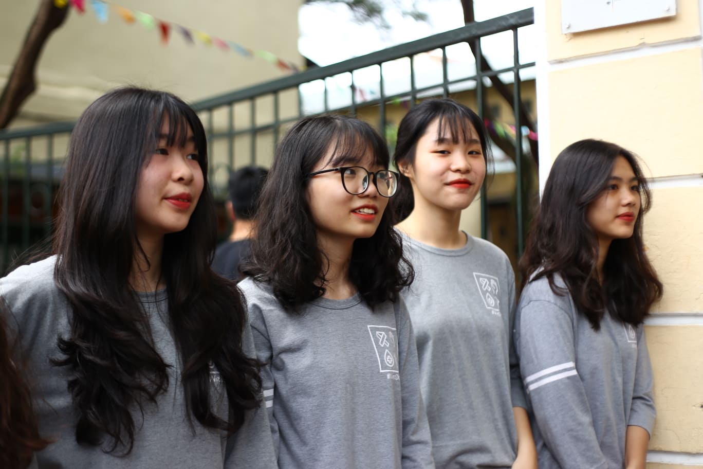 Đội tình nguyện của THPT Việt Đức tham gia hỗ trợ thí sinh và phụ huynh trong kỳ thi tuyển vào 10 công lập.