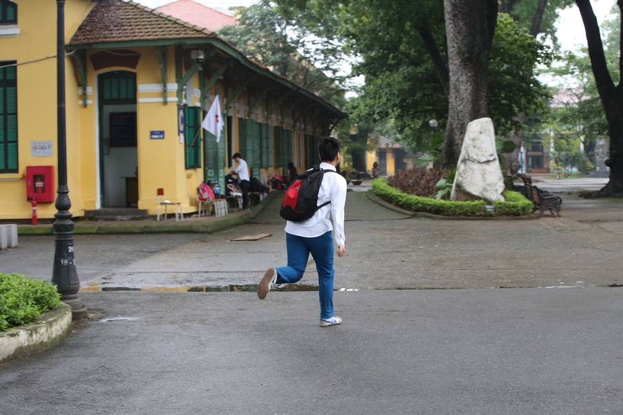 Theo ghi nhận của phóng viên, vẫn có trường hợp thí sinh hớt hải chạy vào trường thi vì đi muộn.
