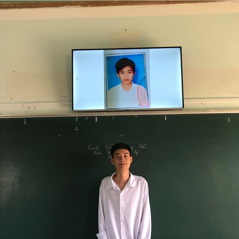 Bạn H.M chia sẻ tỏ ra thích thú: “Lớp có tivi để thực hiện bộ ảnh luôn…sướng phết, chả bù với lớp mình, đúng là trường người ta mà!”