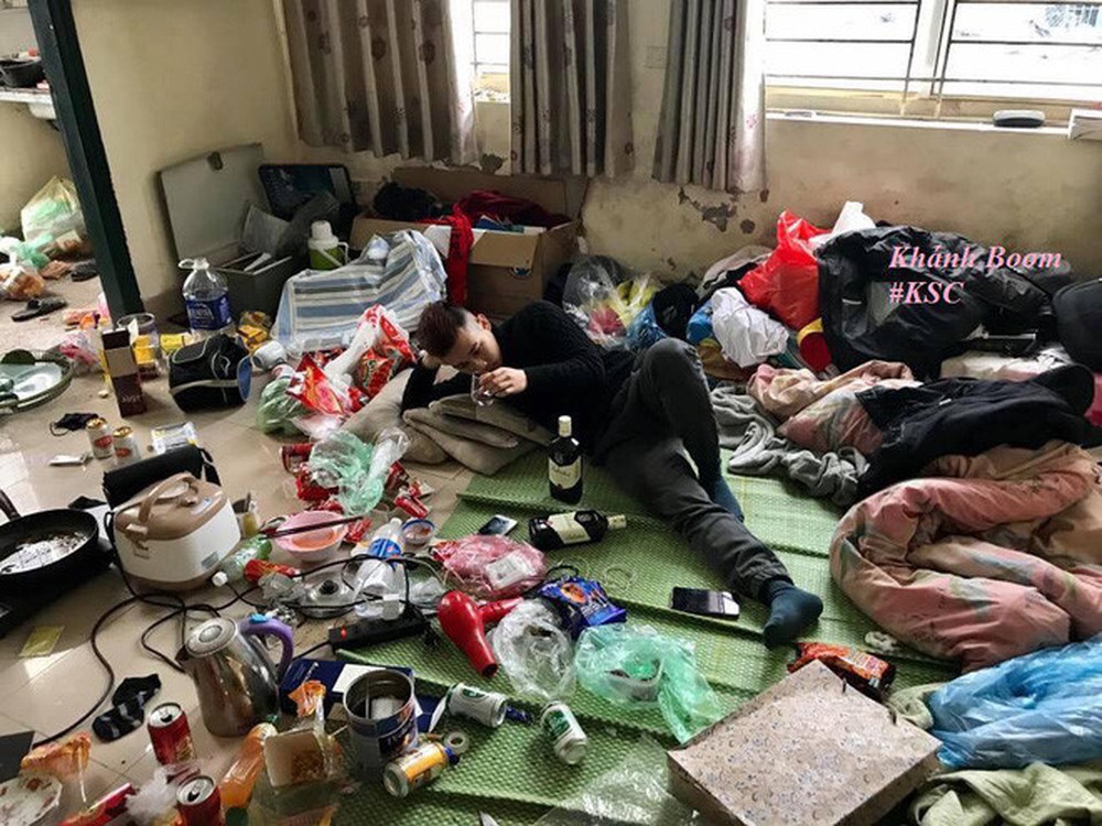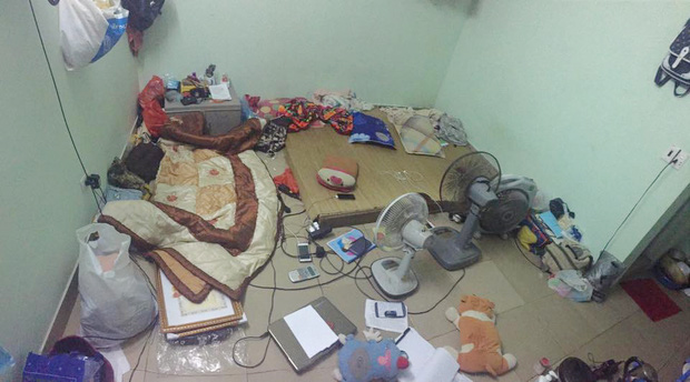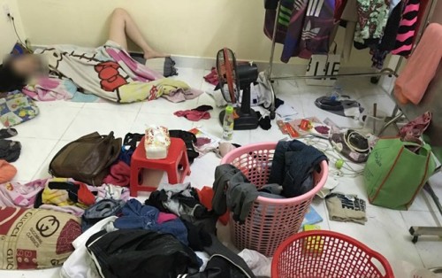 Căn phòng trọ bẩn đến nỗi không phân biệt được đâu là đồ đạc đâu là rác nữa. Ảnh: Dân trí