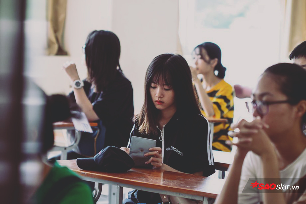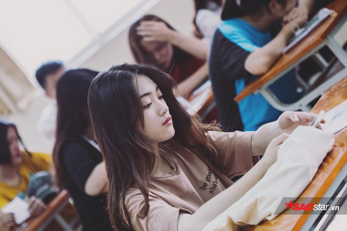 Một cô bạn khá xinh xắn, đến sớm và đang chờ tới giờ thi chính thức.
