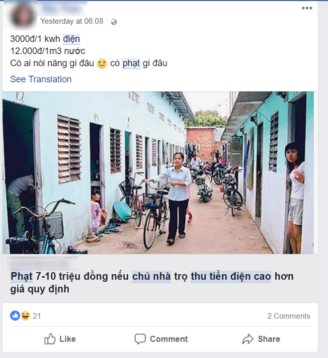 Thực trạng giá điện cao nhưng chưa được xử lý khiến người thuê nhà phải lên tiếng. Ảnh chụp màn hình.