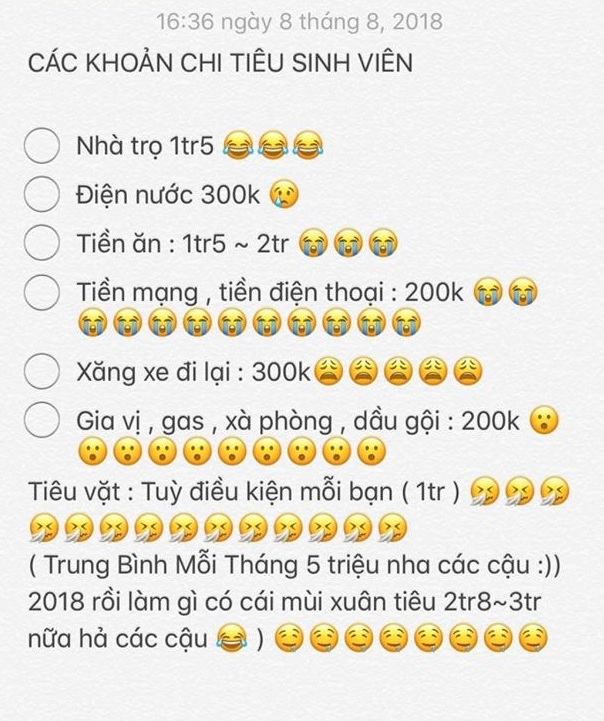 Chia sẻ gây bão mạng của 1 sinh viên về mức chi tiêu hàng tháng.